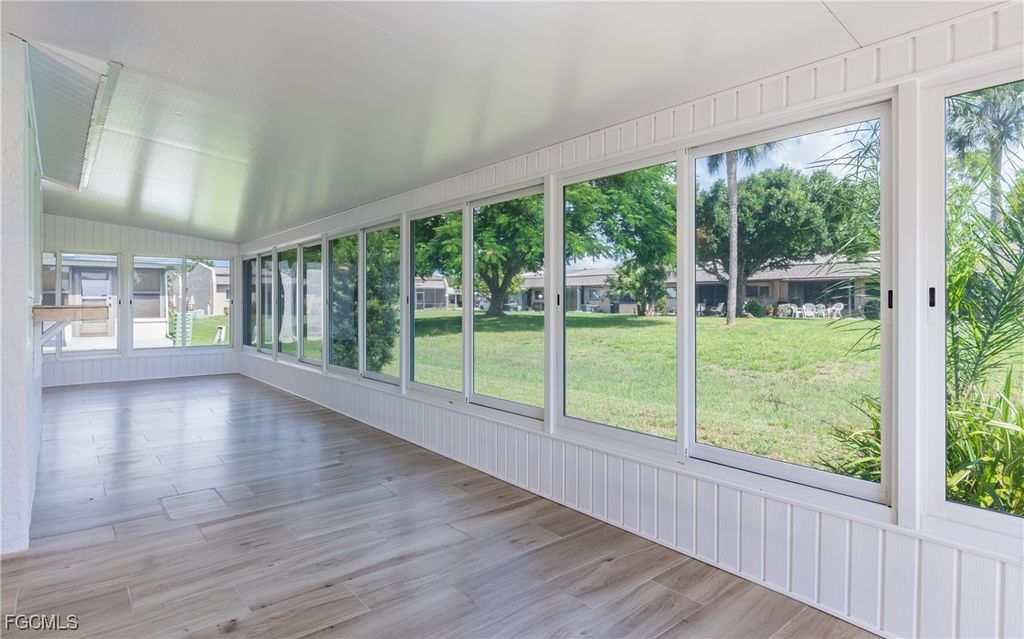 .A light-filled Florida sunroom with floor-to-ceiling windows - perfect for a creative lounge, office, or reading room