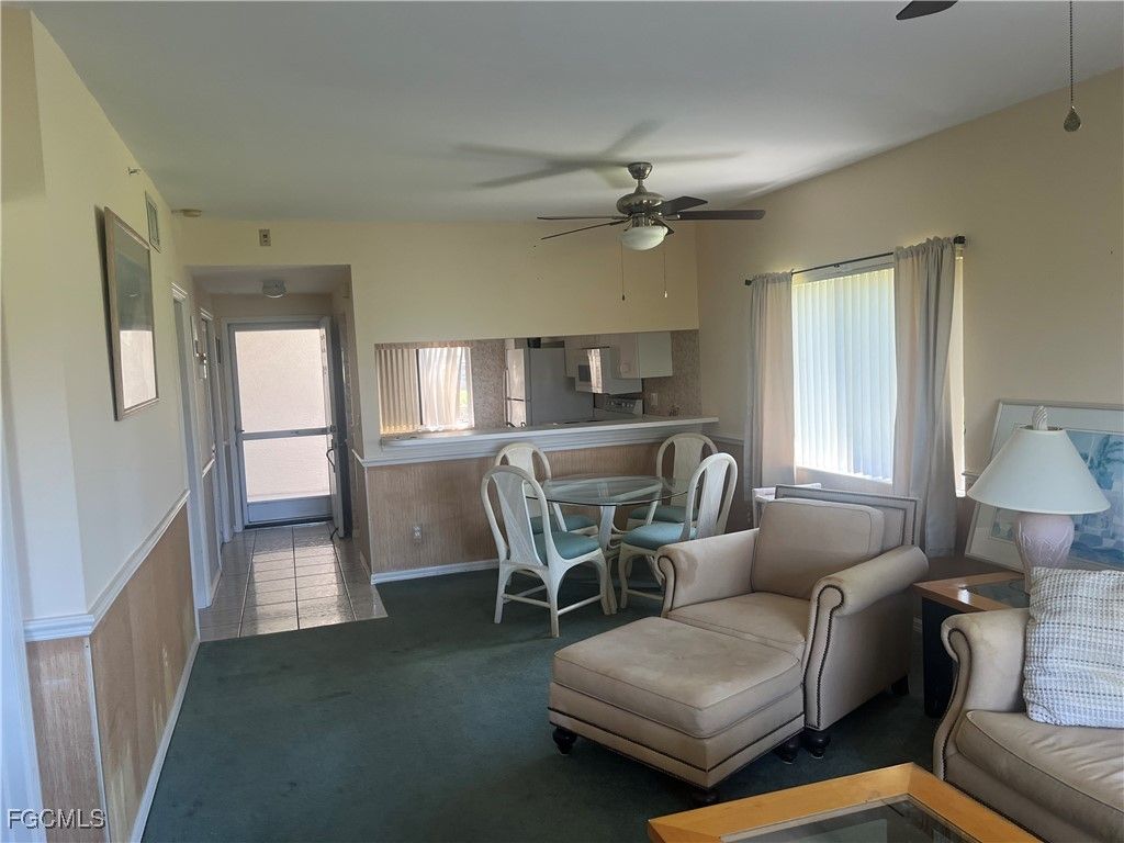 Come home to a tranquil & beautiful water view from this cheerful, updated 2/2 with a spacious floor plan. Enjoy the convenience of your carport being closest to the street-level unit, just steps away! The lovely gourmet kitchen & features soft close cabinetry with Lazy Susan, modern appliances, huge countertops and more. Tile and cerpeting flooring, window blinds, paint, some furniture and bed & bath linens are also recent updates. Your rent includes water, sewer, basic cable & more as well as usage of the nice clubhouse, pool, racquet courts, shuffleboard, bocce, fishing pier, and bundled golf for 2 on the Executive, Par-3 course, which offers off-season reciprocals at some other courses. No damage to this condo unit from any recent storms! When you leave Golfview in your car, it is a short drive to the area's fine health care, restaurants, shopping & culture (Barbara B Mann is about 2 miles up the road!), and you can walk to Lakes Regional Park with all of its recreational possibilities & weekly Farmer's Market in Season. Bunche Beach is about 7 miles, with Fort Myers Beach & Sanibel not much further. Downtown Fort Myers with ArtWalk, MusicWalk, the FL Rep and lots of special weekend events is about 10 miles away, and RSW Airport is about 14 miles. You can't beat the location for convenience! This unit was not flooded by Hurricane Ian or any other storm. Furniture pictured on lanai was borrowed & is NOT included in the turnkey rental. Tenant and tenant's agent are responsible for independent verification of all listed information and fees prior to entering into a lease agreement. Some info is supplied by third parties. *** Annual rent is $1850 per month plus electricity. OR Rent is $3,599 per month for Season which is January - April. Short term state and county tax rate of 11.5% applies. Owner would prefer longer lease of 6+ months, rate TBD according to months involved. Call agent for details. No 11.5% is required on a long-term lease. ***