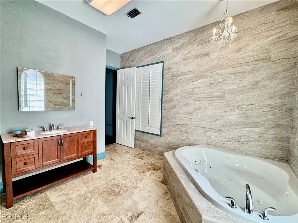 room and a beautiful master suite with and her baths and a private screen enclosed balcony. Walk to nearby