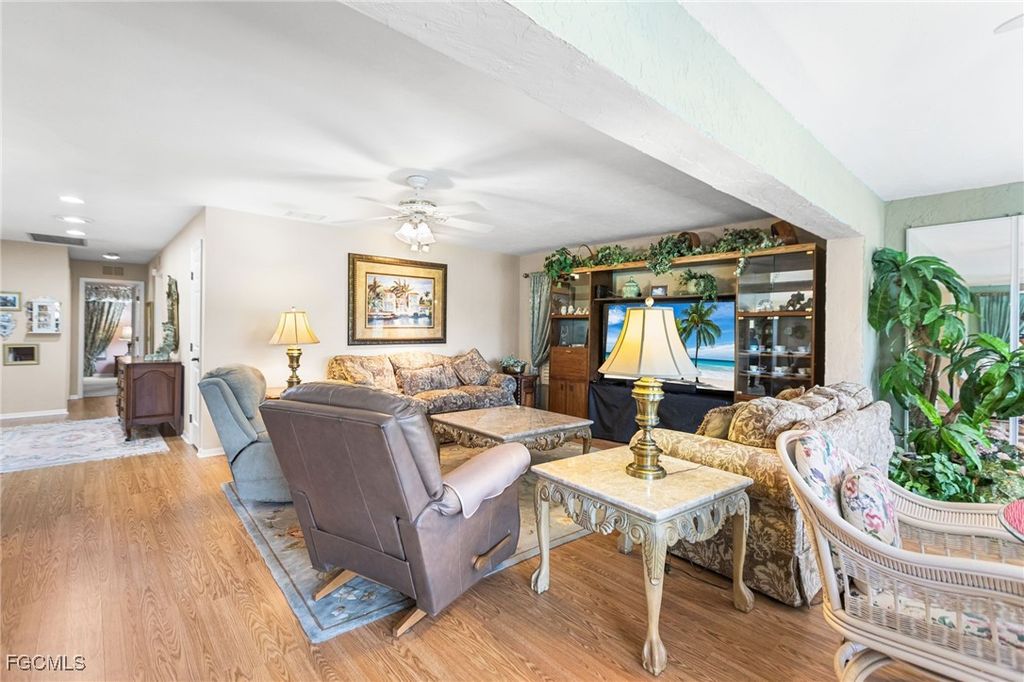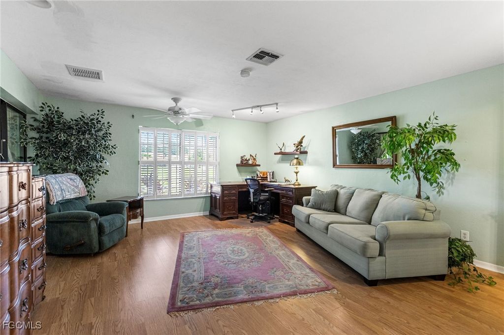 The LARGEST FLOOR PLAN in 55+ WHISKEY CREEK is waiting for YOU! TWO SUITES plus a HUGE DEN with HALF BATH in an END-UNIT "condo-villa" spanning nearly 2,200sqft under air with a 2-car GARAGE and PAVER DRIVEWAY is perfect for entertaining friends and family, ensuring enough space for everyone. If you dream of more, the den and half bath could be easily converted into a third suite. The main living area is flooded with natural light thanks to the ENCLOSED LANAI, and it features a SCREENED ENTRY and an UNDER-AIR ENTRY with FRENCH DOORS that is used as an additional seating area. Want to enjoy some outdoor living? The HEATED COMMUNITY POOL is just steps away! The UPDATED KITCHEN is a chef's dream with ample and FRESHLY PAINTED white cabinetry, GRANITE countertops, newer white appliances, a LARGE ISLAND with storage & room for bar seating, and an ILLUMINATED PANTRY. The kitchen and baths feature TILE flooring, while the main living areas, second suite, and den offer a warm wood-look LVP, and the primary suite provides comfort and coziness with neutral carpet. PLANTATION SHUTTERS adorn every window, adding a touch of elegance to the space. The two suites are SPACIOUS, with the primary suite featuring a DUAL VANITY and WILK-IN SHOWER, while the second suite has a single sink and tub/shower combo. The LAUNDRY ROOM is equipped with a newer W/D (2yrs), ample cabinetry, and a BUILT-IN SINK for added convenience. HURRICANE SHUTTERS, both electric and manual, provide peace of mind during storm season. NEW ROOF (2023) is covered by the association, NEW A/C (2022), newer water heater (2020), and NO FLOOD INSURANCE REQUIRED, making this villa a rated "BEST VALUE BUY" in the area, with the option to include furniture and decor for a truly turnkey experience. Whiskey Creek allows 1 pet, 1 lease per year, and is perfectly positioned to be just minutes away from Downtown Fort Myers, Cape Coral, & the pristine beaches of SWFL. And you have the option to get a GOLF MEMBERSHIP or just PAY-TO-PLAY at Whiskey Creek Golf & Country Club, just a short cart ride away! Don't miss out on this incredible opportunity to own a piece of paradise!