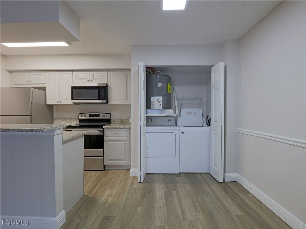 BOTTOM FLOOR!!! Nestled within the secure confines of the Mystic Gardens gated community, this recently refurbished first-floor condo boasts two bedrooms and two bathrooms. A suite of brand-new appliances complements the modernized space, which features a full-size washer/dryer discreetly tucked away for convenience. Revel in the luxury of walk-in closets, granite countertops, and a tasteful blend of laminate flooring throughout. Elevating the experience are upgraded granite bathroom vanities, a freshly tiled enclosed walk-in shower, and a contemporary color palette that enhances the ambiance. Step outside onto the expansive screened-in lanai to bask in the glorious Florida weather, or opt for relaxation beside the community pool for the ultimate in leisurely pursuits.