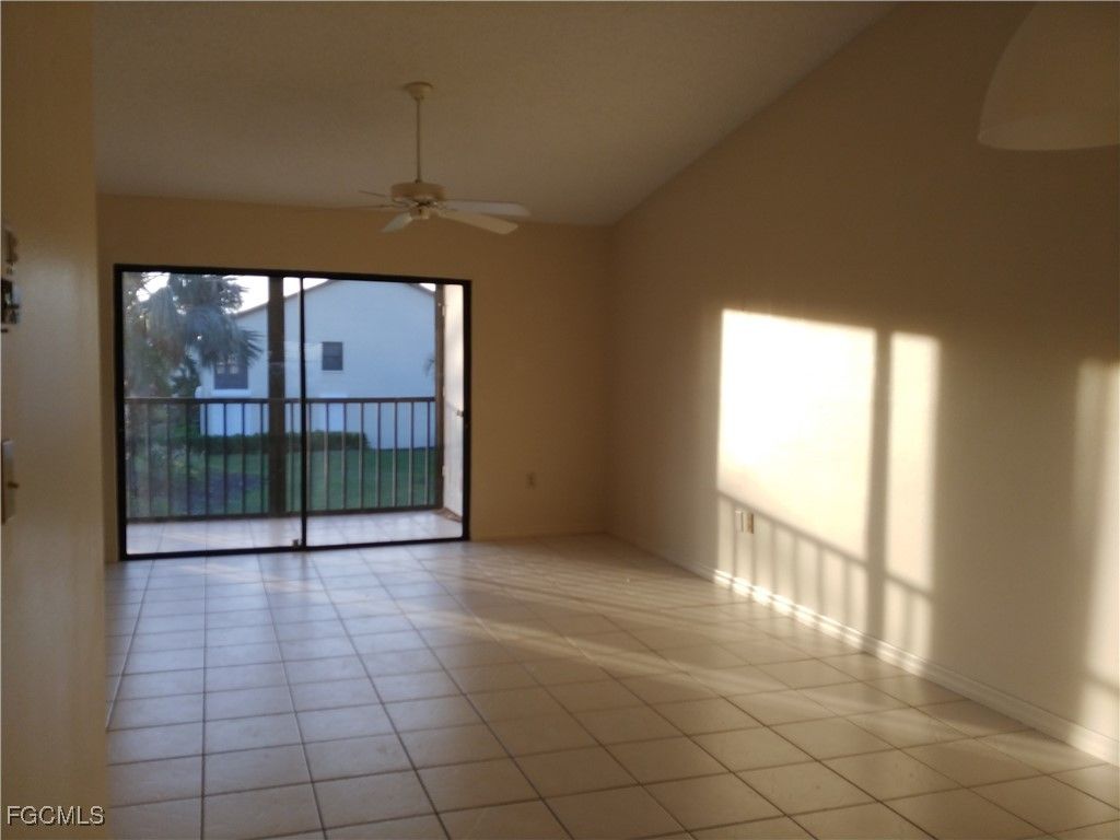 Not your typical 2/2 condo! This one has an extra living area perfect for dining, den, library, studio, game room, play room, you name it! Easy care all tile floors, kitchen with open breakfast bar and space for extra storage or small dinette, large screened balcony with brand new Florida glass windows for year-round comfort, laundry closet with full size washer/dryer, and ceiling fans throughout, and walk-in closets in both bedrooms. Primary bedroom suite features a corner shower, and pull-down attic access stairs leading to a large storage area above. Cable and water/sewer included! Enjoy the sparkling pool, shuffleboard, or walk around the corner for the city's best Buffalo wings! Lovely, peaceful community is super conveniently located near College Pkwy and McGregor with shopping and dining within walking/biking distance.