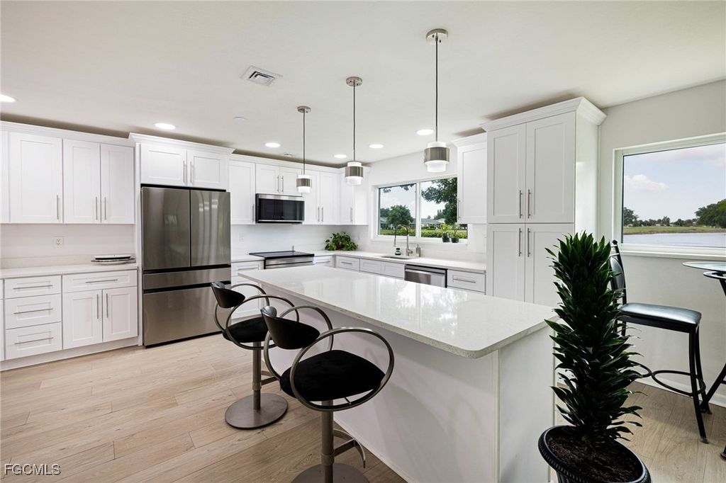 Step inside to find a fully redesigned kitchen, featuring sleek cabinetry, quartz countertops, and stainless steel appliances"”an ideal space for both everyday living and entertaining. The open-concept floor plan flows effortlessly into the living and dining areas, enhanced by abundant natural light and new hurricane impact windows that provide peace of mind and energy efficiency. This fully furnished villa has been transformed with over 55k in upgrades to meet the most discerning buyers needs and leaves minimal work for its new owners.