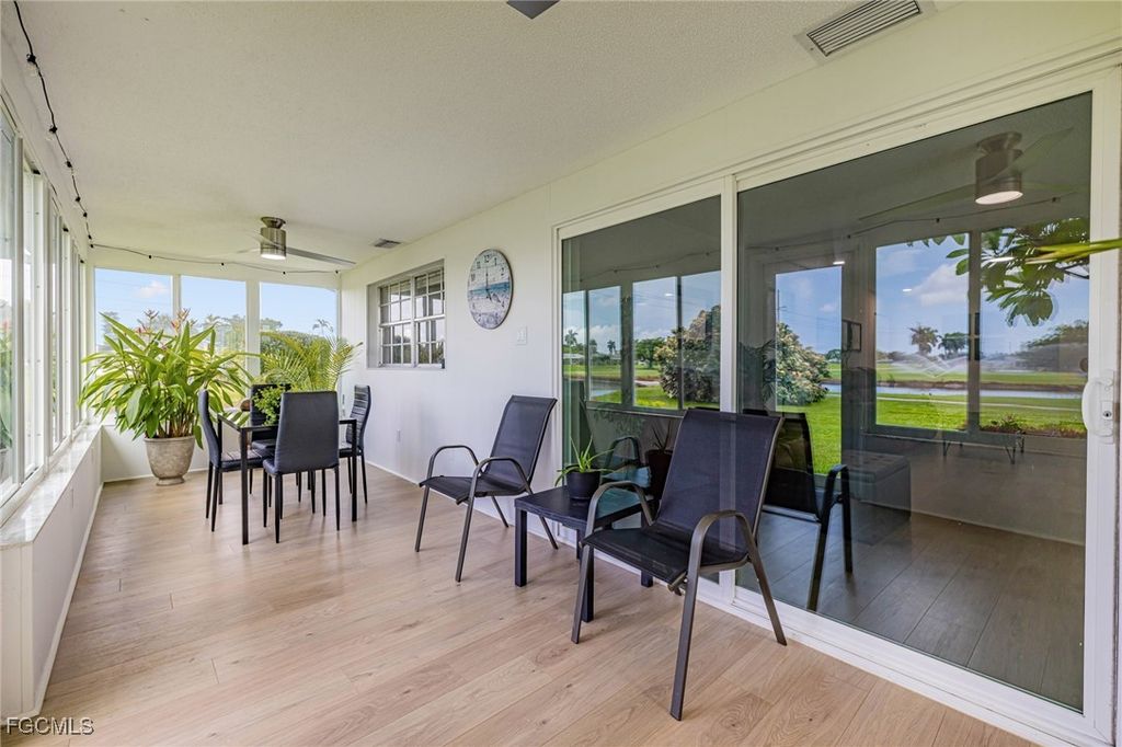 The enclosed lanai expands your living space, creating a bright and versatile area for relaxing, dining, or enjoying panoramic views of the golf course and tranquil lake. Overlooking holes 3 and 4, this villa provides a picturesque backdrop whether you're sipping your morning coffee or unwinding at sunset.