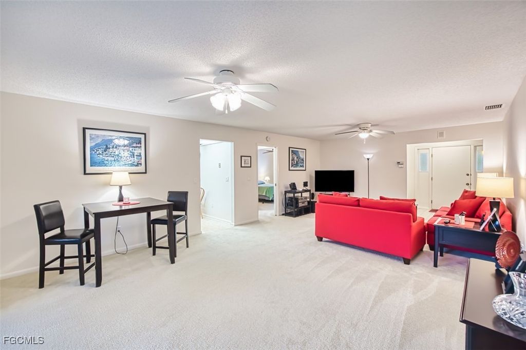 This METICULOUSLY-MAINTAINED "condo-villa" with a BRAND NEW ROOF is calling you home to Brandywine of Myerlee! This 55+ GOLF CART-FRIENDLY community has a GUARDED GATE, lots of amenities, and is a short drive to SWFL's finest beaches! Providing 2 bedrooms and 2 baths on a SPLIT FLOOR PLAN, spanning nearly 1600sqft, this SPACIOUS home also features a 2-CAR GARAGE and an EXPANISVE AIR-CONDITIONED LANAI, ensuring plenty of room for entertaining friends and family. The kitchen offers ample storage with warm WOOD cabinets and a matching pantry, as well as a generous countertop area and classic white appliances. NEUTRAL carpet, tile, and walls are a canvas begging for your creative, personal touches to make it truly your own. Brandywine offers a community pool, bocce, tennis, pickleball, billiards, library, exercise room, and more; plus, the perfect location positions it near tons of shopping, dining, and entertainment! GOLF MEMBERSHIPS or PAY-TO-PLAY at Myerlee G&CC available. No pets, sorry! Scoop us this rated "BEST VALUE BUY" before it's too late and start living your Florida dream life today!