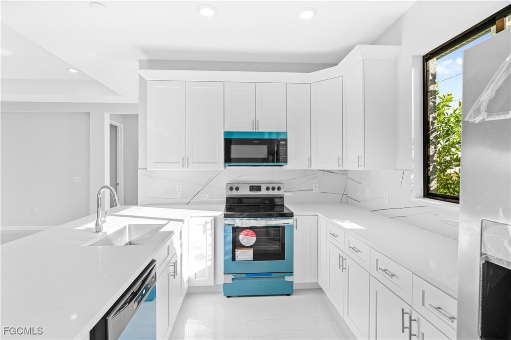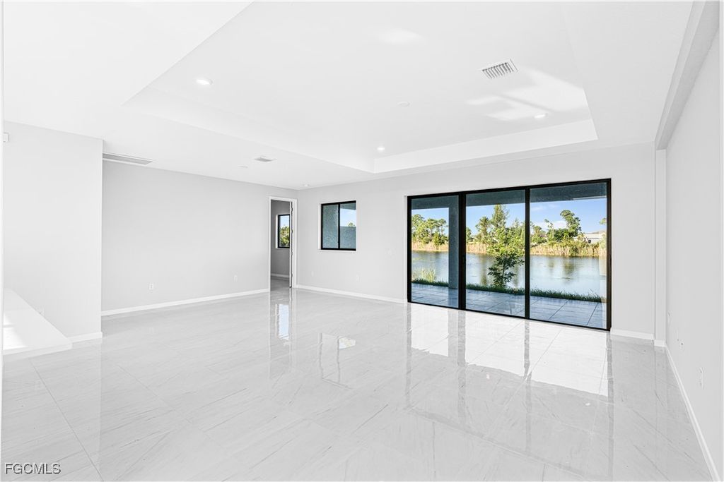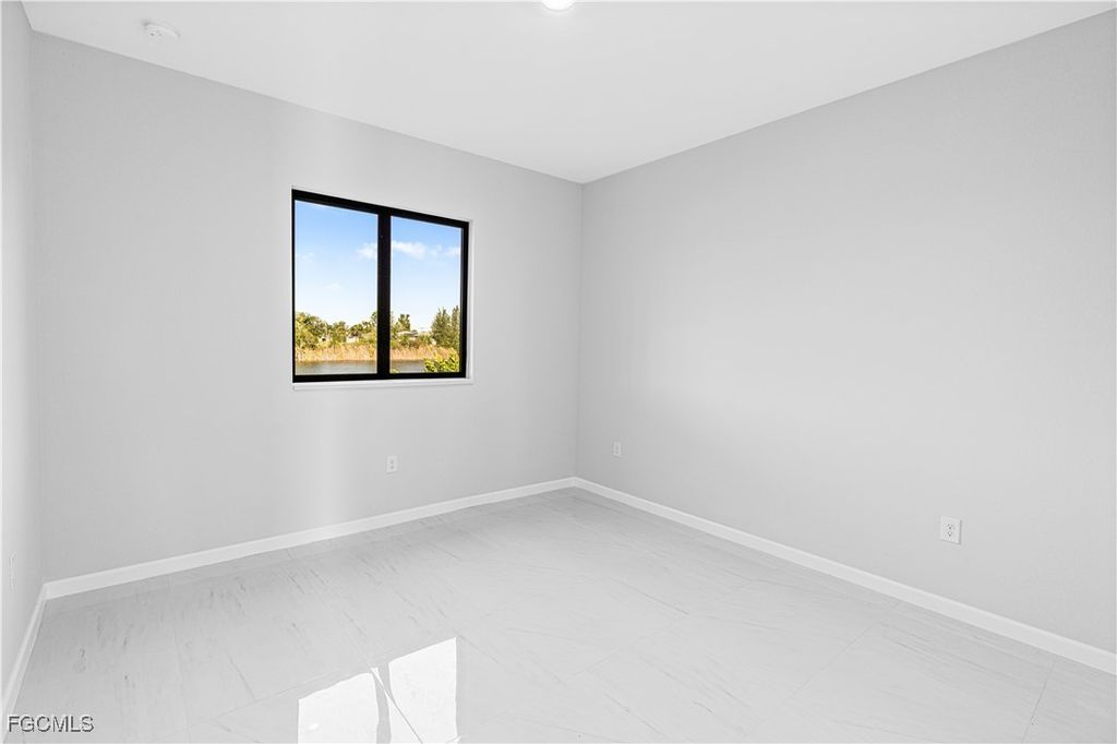 Brand new 3-bedroom, 2-bath waterfront home for rent in NE Cape Coral on an intersecting canal. Features 1,655 sq. ft. under air (2,458 total), high ceilings, granite countertops, stainless steel appliances, large kitchen cabinets, a separate laundry room, and custom tile at the front entrance and lanai. Includes a 2-car garage. Located in a family-friendly neighborhood with easy access to Del Prado Blvd and Route 41 for commuting, shopping, and dining. Water and sewer are not yet connected. First month's rent and security deposit required before move-in. No pets.
