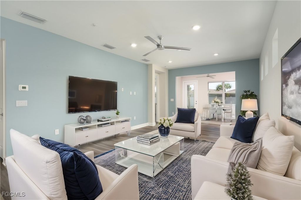You will NOT find a better home for THIS PRICE!!! Exciting update: A 10x30 foot full length bronze color aluminum screen cage is being added to the paver area of this beautiful home, providing an even more perfect outdoor lanai space for relaxing or entertaining! This highly requested upgrade will enhance the value and functionality of the home! . Buyers have loved this home, and now it's even better. Don't miss the opportunity to own this beautifully upgraded property at the newly improved price Edgewater at Babcock Ranch is built along the shores of Lake Timber and is home to this truly one of a kind home. This beautifully upgraded 3-bedroom, 2-bath, Hallmark model home was designed and built by Pulte Homes. This thoughtfully designed home offers brand-new luxury vinyl plank flooring, an upgraded chef's kitchen featuring a gorgeous backsplash, LED under cabinet/under island lighting, gas cooktop, beautiful over-the-range hood, built-in microwave/oven combo, and you will appreciate that all appliances are top-of-the-line KitchenAid appliances. The spacious laundry room is already equipped with custom built-in cabinetry for extra storage. Take note that is home also has an upgraded 4ft garage extension and gorgeous 8 foot doors throughout. You just have to see this one in person. Enjoy the added versatility of a sunroom off the back of the home, perfect as an office, playroom, or cozy retreat. Step outside to your newly added spacious paver patio, ideal for entertaining, relaxing, or enjoying the beautiful Florida weather. The large backyard also offers plenty of room to add a pool so you can create your dreamy, private outdoor oasis. Edgewater residents enjoy EXCLUSIVE access to a private heated pool, cabana and cozy fire pit area, fostering a true sense of community with your neighbors. Edgewater is within close walking or bike riding distance from Founder's Square, Babcock Ranch's walkable downtown with shops, restaurants, outdoor recreation areas and a lakeside boardwalk and band shell. Parks and trails, a lake for kayaking and canoeing, and Lee Health's Healthy Life Center encourage a healthy lifestyle. Beyond your neighborhood, Babcock Ranch is renowned for its resort-style amenities, live music, farmers markets, holiday events, golf cart parades, and vibrant HOA activities for all ages. With community pools, parks, dog parks, and over 50 miles of scenic trails, there's something for everyone to love here in Babcock Ranch. Located 30 feet inland and above sea level, Babcock Ranch offers LOW insurance premiums and continues to expand with exciting additions to come such as 3 hotels, 2 Wawa gas stations, an FGCU campus, and the upcoming B Street, a boutique style shopping and dining district. There are so many exciting new places and spaces to enjoy. Don't miss this incredible opportunity to own in America's first solar-powered town! Schedule your private showing today!