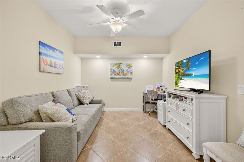 The spacious primary suite features dual closets, a granite double vanity, walk-in shower, and private water closet. The guest bedroom offers privacy with a nearby bathroom that includes a tub/shower combo and dual access from both the hallway and bedroom. Additional highlights include: * Detached garage + assigned parking space * In-unit laundry with full-size washer and dryer * Den/flex space - perfect for a home office or guest room * Impact glass for safety and energy efficiency * Pet-friendly community * First-floor convenience - no stairs! Built for peace of mind, this newer elevated construction unit has no history of storm or flood damage and includes impact-resistant windows/doors and a special upgraded hurricane shutter on the back slider door for added protection. Enjoy resort-style amenities including a clubhouse, community pool and spa, fitness center, library, BBQ area, and lushly landscaped grounds with sidewalks and streetlights for evening strolls. Positioned in one of Fort Myers' most convenient locations, this home offers easy access to world-renowned beaches, including Sanibel, Captiva, and Fort Myers Beach, as well as shopping, dining, and entertainment just minutes away.