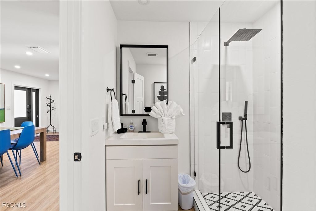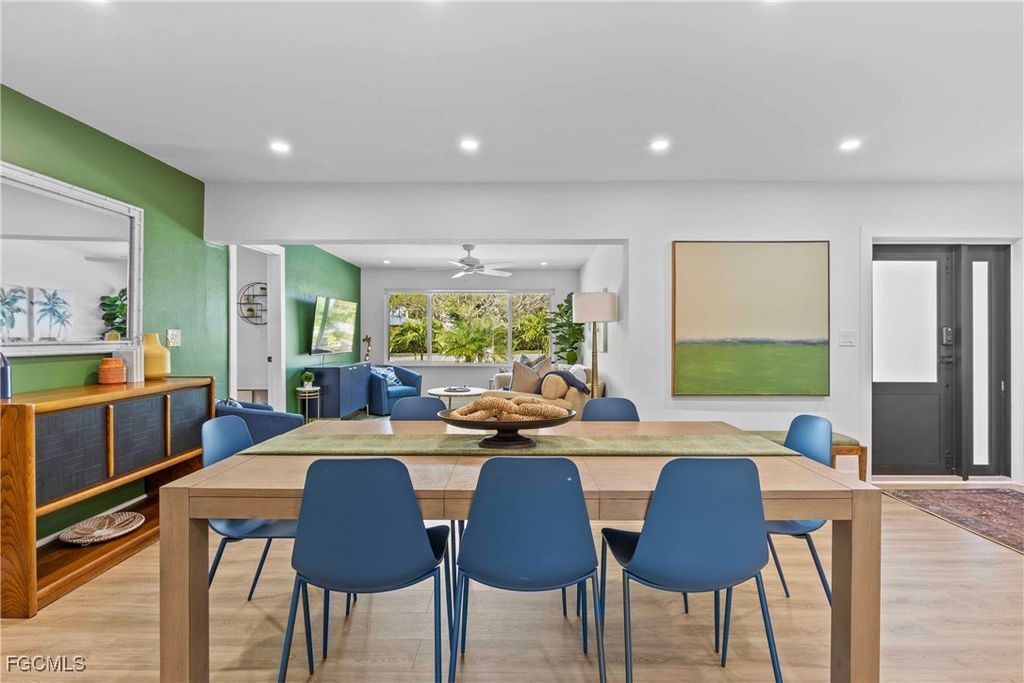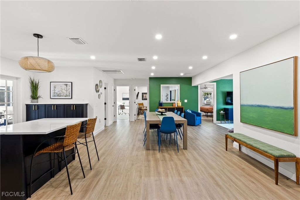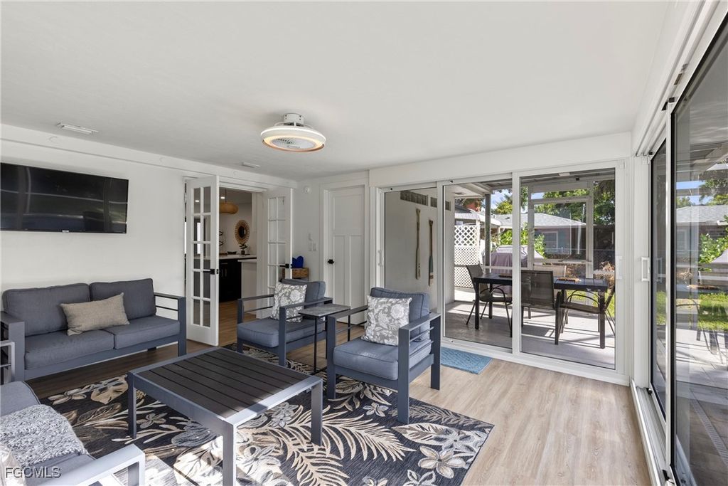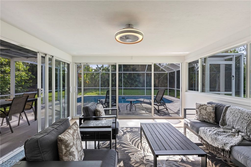 Make no compromises in this fully remodeled home in the heart of historical Mcgregor corridor. Nested in one of Fort Myer's most desirable neighborhoods, between McGregor Boulevard and the river, this pool home invites you to enjoy all the modern conveniences in a serene palm lined street steps away from the Caloosahatchee River. Updated inside and out, this home's open floor plan integrates a functional and elegant kitchen, ample dinning room and an inviting family room. The primary bedroom is spacious, beams with natural light from two picture windows, has a walk-in closet and a renovated primary bathroom, with dual sinks, and a gorgeous walk in shower. Three guest bedrooms - one currently furnished as an office - offer your guests privacy and comfort. The stylish furnishings and decor can be purchased with the home, allowing you to move in bringing only your personal items. The true indoor/outdoor lifestyle can be enjoyed in your enclosed Florida room, an enclosed, comfortable sitting space adjacent to a covered outdoor dinning area overlooking the pool and your private landscaped backyard. Twin Palm Estates' residents enjoy Fort Myer's beautiful sunsets over the river in an active, walkable and friendly neighborhood with no HOA.