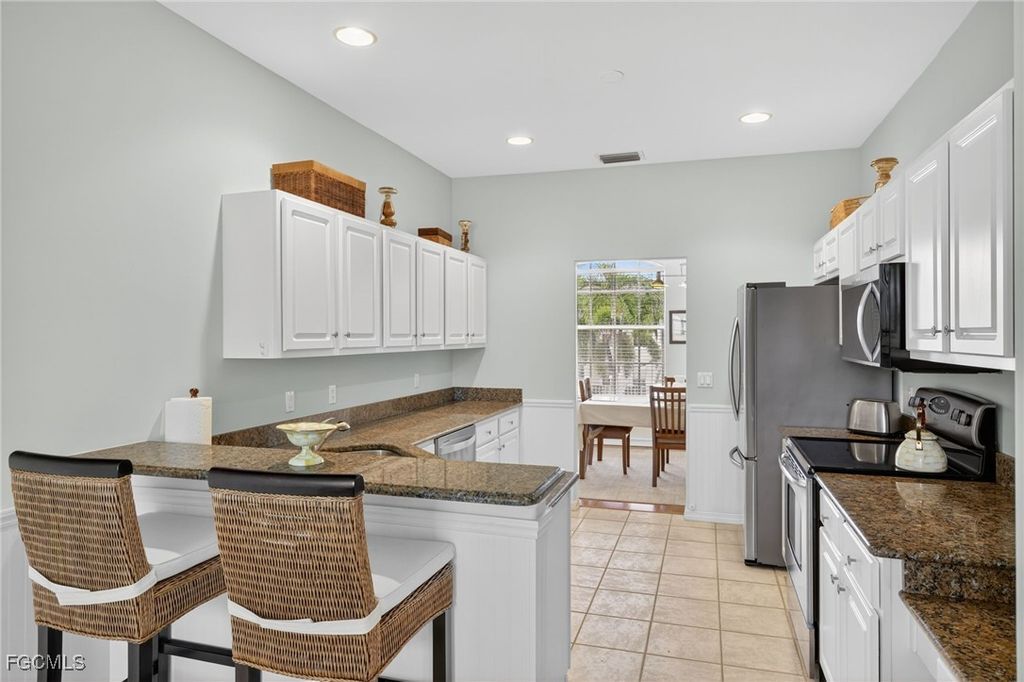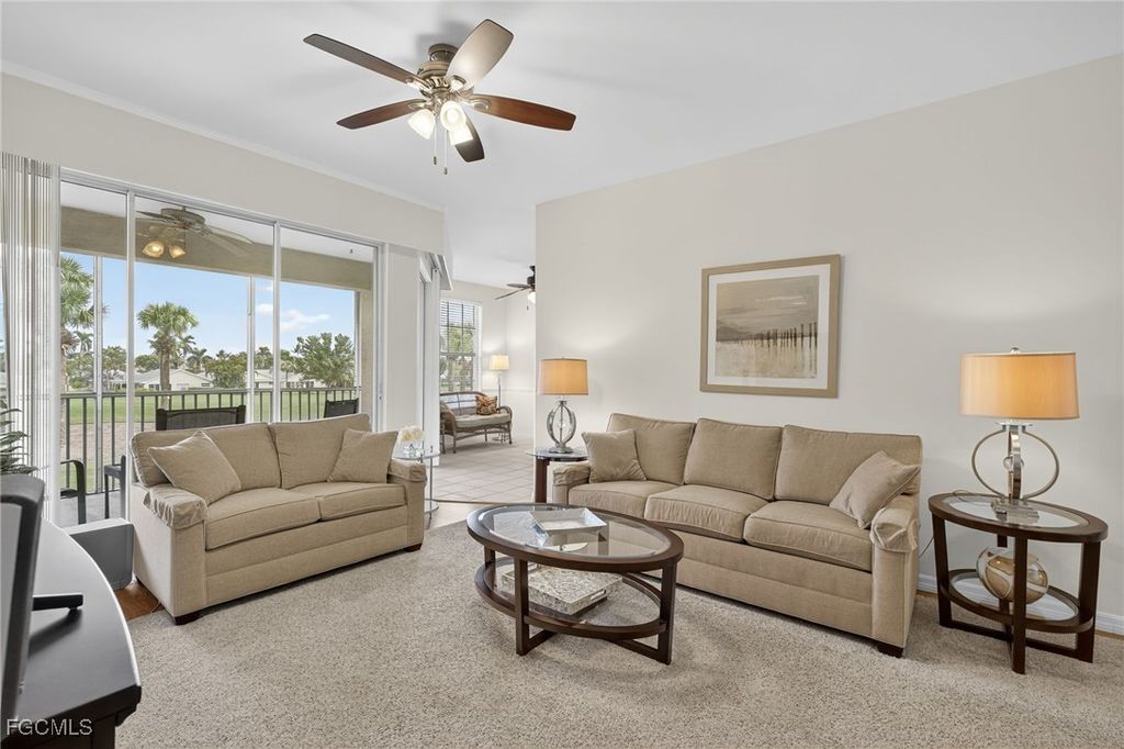 Welcome to your new home in the prestigious Gulf Harbour Yacht & Country Club, a premier private, gated community in Fort Myers. Located in the beautiful Tamarind Cay neighborhood, this second-floor, three-bedroom, two-bathroom residence offers an exceptional Florida lifestyle with stunning views and luxurious updates. Step inside to discover a bright and inviting living space. The main areas of the home are adorned with durable and stylish laminate flooring with tile in the kitchen and eat in area, The kitchen boasts beautiful granite countertops, sleek stainless steel appliances and charming wainscoting in the eat-in area, perfect for casual meals or your morning coffee. The master suite is a true retreat, featuring a recently new shower and countertops for a spa-like experience. The bedrooms are comfortably carpeted, providing a cozy sanctuary at the end of the day. Enjoy serene mornings and tranquil evenings on your north-facing screened-in lanai, offering a picturesque view overlooking the lush, manicured 5th hole on the golf course. This home has been meticulously maintained, used for only about three months out of the year for the last 15 years, ensuring it feels fresh and new. This unit also includes a single-car garage for your convenience. As a resident of Tamarind Cay and Gulf Harbour Yacht & Country Club, you have the option to join the club and take advantage of world-class amenities, including a championship 18-hole golf course, a deep-water yacht basin and marina, a wellness center and spa, resort-style pools, and much more. Experience the best of Southwest Florida living, with easy access to the white sands of Sanibel and Fort Myers Beach, as well as a wide array of dining, shopping, and entertainment options. This is more than a home; it's a lifestyle.