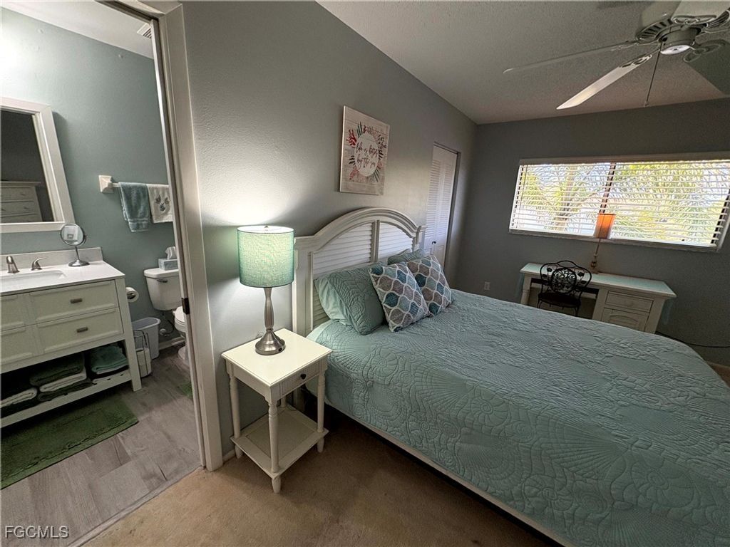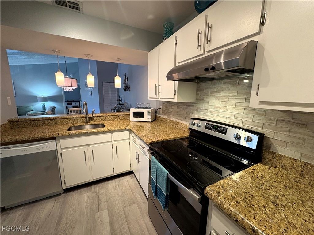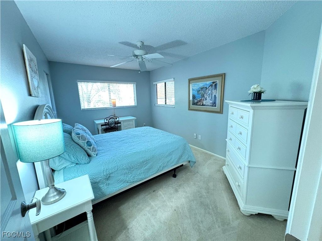 Welcome to your perfect Florida getaway close to beaches! This high and dry 2-bedroom, 2-bathroom second-floor condo is fully-furnished TURNKEY perfection, just bring your suitcase and move right in! Located right across the street from the pickleball and tennis courts, and a short distance to the pool, you'll feel like every day is a well-deserved vacation. Inside, the coastal-inspired furnishings and décor instantly set a relaxed, beachy vibe. You'll love the vinyl plank flooring, vaulted ceilings that create a light and airy feel, and a stylish kitchen with granite countertops and glass-tile backsplash. The spacious layout includes large walk-in closets for ample storage and a bright, airy feel throughout. Whether you're enjoying your morning coffee on the lanai, hitting the courts for a match, or lounging by the pool, this condo offers the perfect blend of convenience and comfort. It's the ideal spot for a vacation home, seasonal retreat, or rental investment, with everything you need right at your fingertips. Unbeatable location in central Fort Myers, and right across the street from Lakes Park, where you can enjoy nature, trails, boating, and a variety of outdoor activities, and just less than 20 minutes away from beaches! Don't miss out on this opportunity to own a slice of paradise in sunny SouthWest Florida! Seller is motivated, make an offer TODAY!