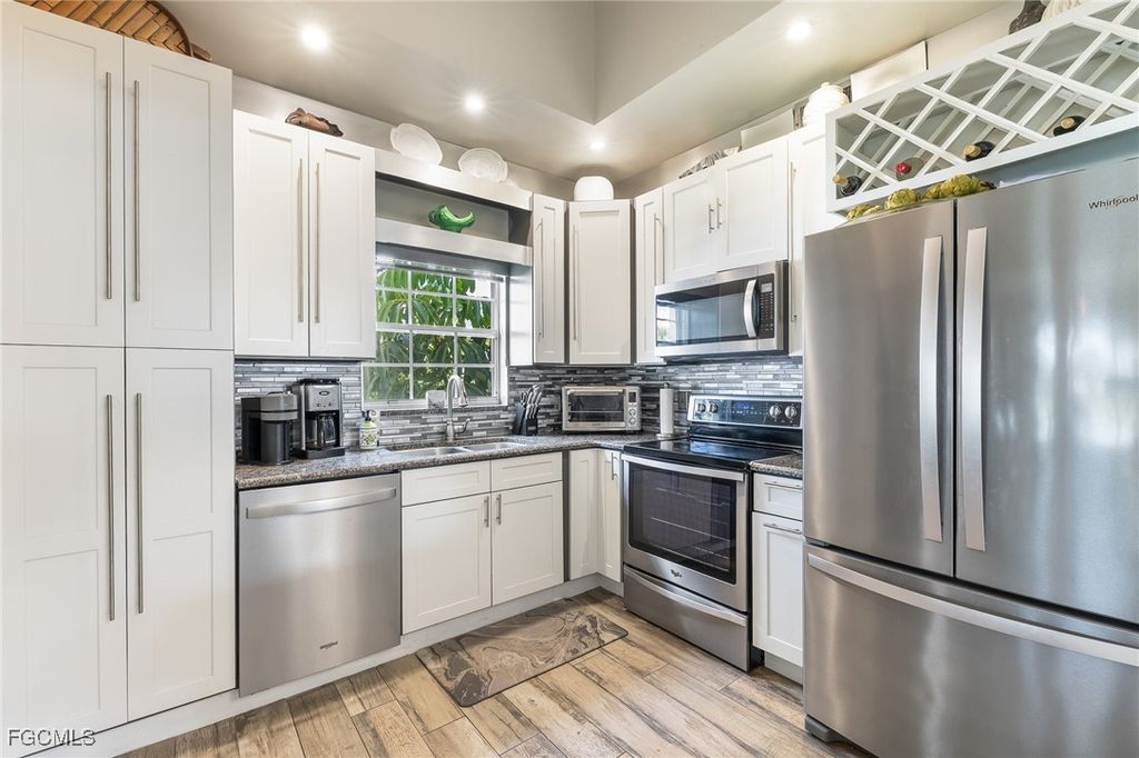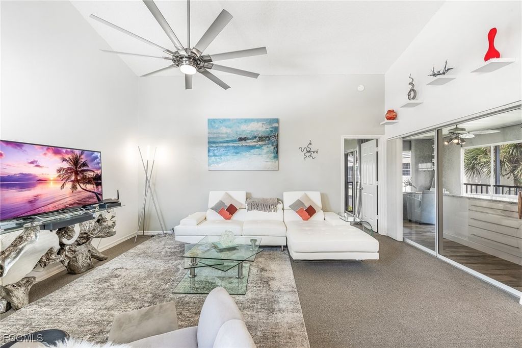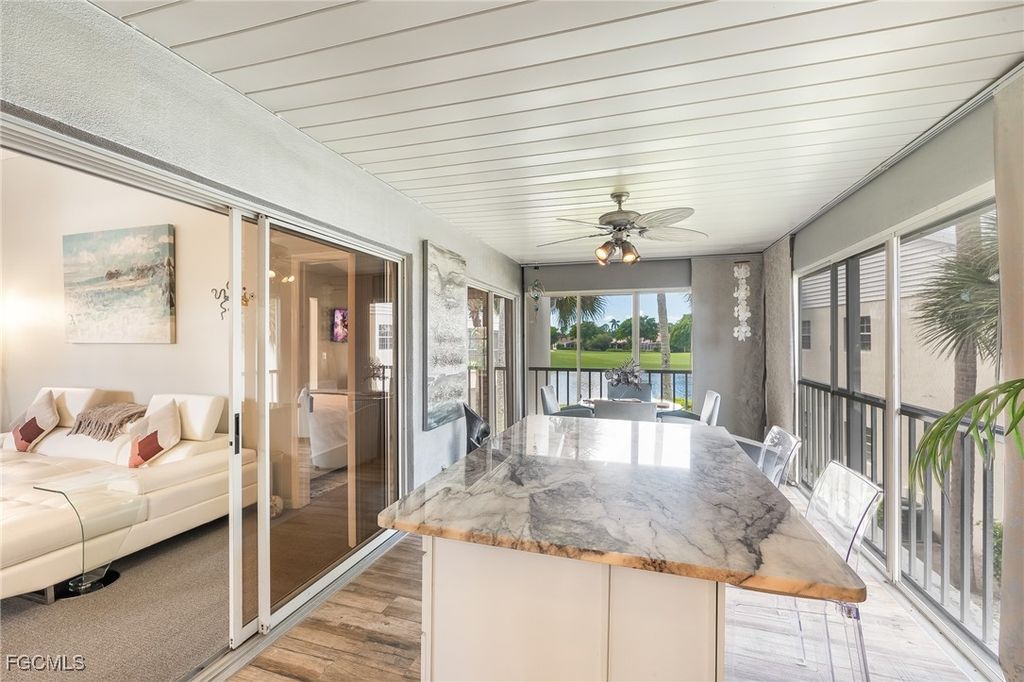 New Price, Seller says FLASH SALE! for this hidden GEM Seller has asked to reduce the price of this spectacular property. Experience modern elegance in this beautifully remodeled 3-bedroom, 2-bath corner unit, offering stunning lake and golf course views from nearly every window and the spacious lanai. Perfectly situated across from the pool, this residence boasts 15-foot vaulted ceilings, an abundance of natural light, and a seamless open-concept design that enhances its already generous over 1200 square feet of living space. Sophisticated Modern Retreat with Lake & Golf Course Views The fully enclosed lanai, featuring a built-in buffet cabinet, provides a luxurious dining experience with panoramic views, while designer lighting, a built-in wine cooler, and a Japanese sunken soaking tub with jacuzzi jets and mood lighting in the primary bath set the stage for ultimate relaxation and romance. Imagine savoring a sunset over the lake with a glass of wine, indulging in a bubbly jacuzzi, or enjoying the soothing sound of raindrops on the brand-new metal roof as you curl up with a favorite book. This unit is professionally decorated and includes high-end furnishings, luxury art pieces, and new carpeting, creating an atmosphere that rivals a 5-star resort. Condo fees include all liability and flood insurance. Seller will pay 3 months of condo fees for new buyer. Whether you're a full-time resident, snowbird, or investor seeking a seasonal rental, this home offers unparalleled style and comfort. Located in the prestigious Gulf Harbour Yacht & Country Club, this property provides access to a private marina, golf, tennis, and scenic bike paths. Residents also enjoy the exclusivity of Eagle Island, a private island perfect for picnicking, birdwatching, or taking in breathtaking sunsets by the river. Just a short drive to Ft. Myers Beach, Sanibel/Captiva, and downtown Fort Myers, this location offers convenience, luxury, and the perfect lifestyle. Don't miss your opportunity to own in one of the area's most sought-after communities!