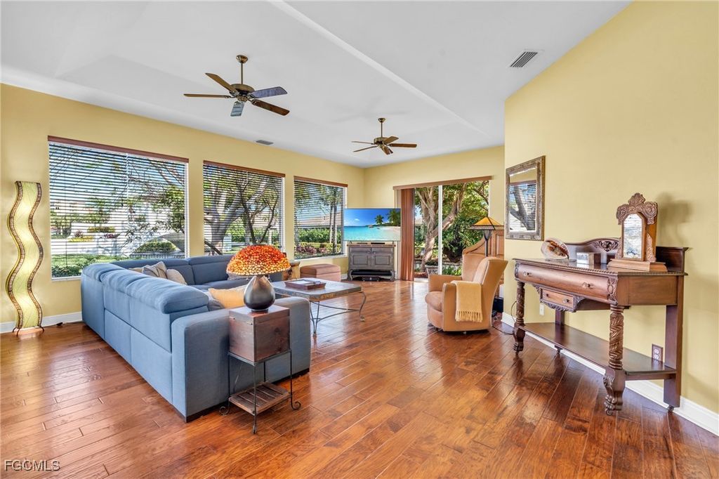 Residents of the gated Harbour Isle community enjoy an amenity-rich lifestyle that includes a resort-style pool and spa, pickleball and tennis courts, clubhouse, fitness center, and even a private island with a fishing pier along the scenic Caloosahatchee River.