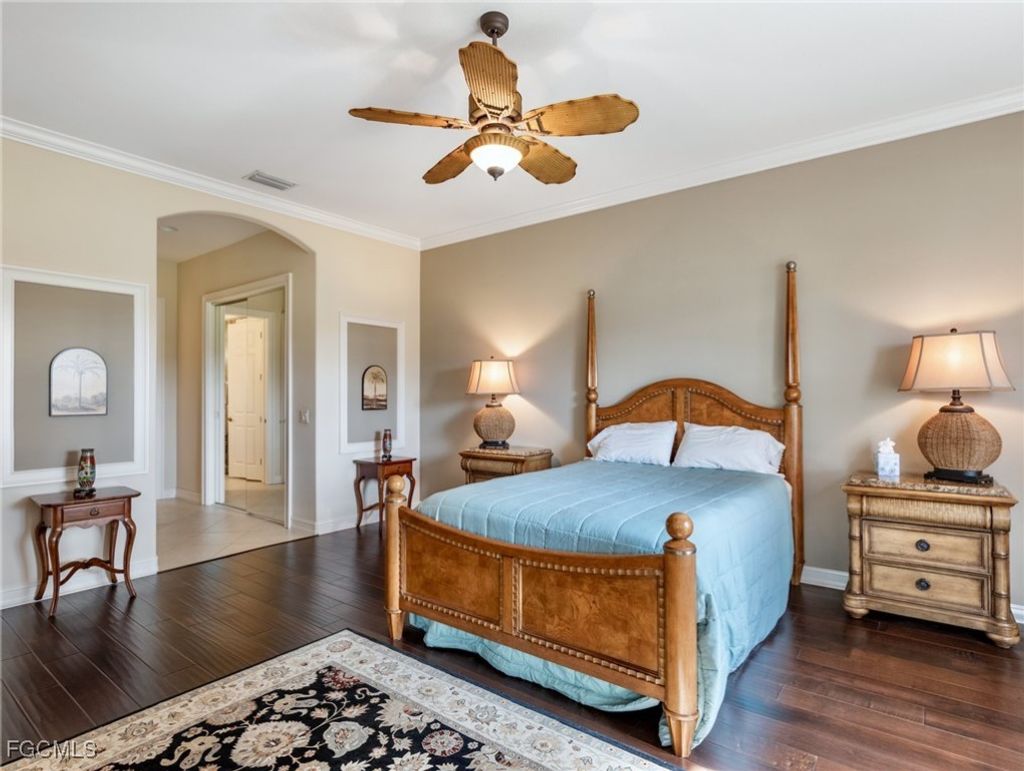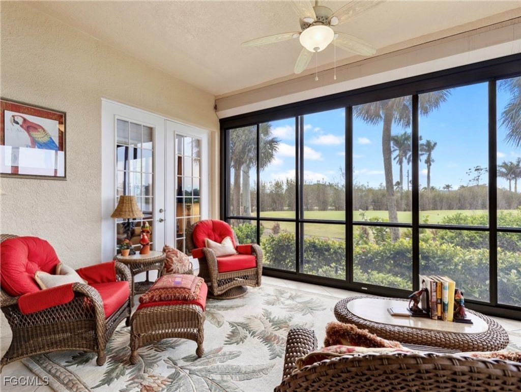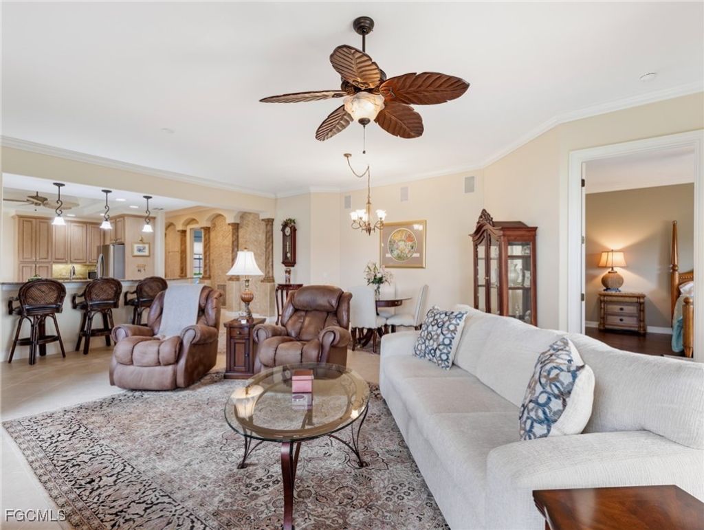 Stunning, impressive, and beautiful are the words you'll use to describe this coach home nestled on the 13th hole in Gulf Harbour Yacht & Country Club. With over 2,000 s/f of living space, this TURNKEY 2 bedroom + Den first floor home creates a feel of grandeur the moment you enter. The entryway hall alcoves set the tone with significant art treatments with interesting stories. Tile floors flow throughout the main living area, and hand scraped wood floors encompass the bedrooms and den. Volume ceilings with crown molding create plenty of space and light, while designer touches and owner upgrades are abound. The kitchen offers granite countertops, stainless steel appliances, a natural-gas cooktop, plus ample areas to gather the family for gourmet meals. The primary suite is split from the guest bedroom for privacy and has two large closets-one walk-in with designer shelving. The ensuite bath is spacious with separate shower and jetted soaking tub, plus double vanity and vessel sinks. The outside patio has been converted into an under air usable space to include tile floors plus sliding sun shades and even electrical hurricane shutters for protection. Long range waterfront views never looked so good! Two car garage with epoxy floor coating a plus! AC is 11 years old with a 1-year remaining warranty. The community of Coronado offers a community pool. Additionally, stellar amenities are all optional at Gulf Harbour Yacht & Country Club. Golf and Sports Memberships include an array of activities such as golf, tennis, a state-of-the-art fitness center, full service spa, several restaurants, private beach, and a deep-water marina. You are now HOME! Agents-please see confidential comments.