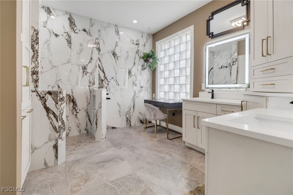 The spacious floor plan flows effortlessly, offering inviting living and entertaining areas designed for today's lifestyle. Soaring volume ceilings and expansive windows bathe the interior in natural light, creating a sense of openness and grace. The gourmet kitchen is a dream for any chef, blending high-end finishes with smart design, contemporary finishes ;porcelain counters, solid wood custom cabinets, premium appliances, Luxurious flooring, designer lighting, details flow seamlessly throughout, offering both warmth and refinement. Each bathroom feels like a private spa retreat. Every surface"”from flooring to lighting to hardware"”has been refreshed or replaced with designer touches that truly set this home apart.