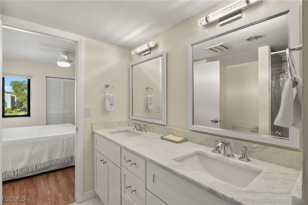 Don't miss out on this Spectacular THREE Bedroom condo in Steamboat Bend Village in The Landings. Beautifully Remodeled with high-end finishing touches throughout. Spacious and Open layout, featuring a split floorplan. Relax and enjoy the amazing lake and fountain views from your large, screened lanai that spans across the entire condo. NEW UPSCALE kitchen with custom cabinets, quartz counter tops and center island, Stainless Steel appliances, Tile backsplash with undercounter lighting. Primary and guest baths both have stunning updates. Plenty of Storage, TWO walk-in closets. Covered carport included. New air conditioner. Hurricane shutters. TURN-KEY... MOVE-IN! The Landings Yacht Golf and Tennis Club is one of the most prestigious communities off McGregor. Enter through the guarded gated onto "park-like" grounds. Amenities for all residents include: A BOAT-SLIP at the FULL-SERVICE MARINA, UNLIMITED Golf, Tennis, Pickle-ball, Bocce-ball, Fitness Center, Clubs and activities. The Landings also has TWO on-site restaurants (one newly remodeled) located on the Caloosahatchee River!