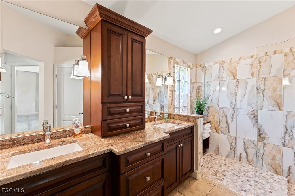 Stop scrolling"”you just found the best rental in Naples. This home features an ultra-high-end kitchen with an oversized granite island, pull-up seating, wine bar with cooler, stainless French-door refrigerator, and double oven. The primary suite offers his-and-her custom California closets, dual vanities, a walk-in shower, and plantation shutters. An open floor plan flows through tile living areas and new LVT bedrooms. Step outside to a private, screened, tiled lanai surrounded by lush landscaping. Impact windows and sliders keep things quiet, while the insulated, epoxy-floored garage with built-in shelving and mini-split A/C adds comfort and utility.
