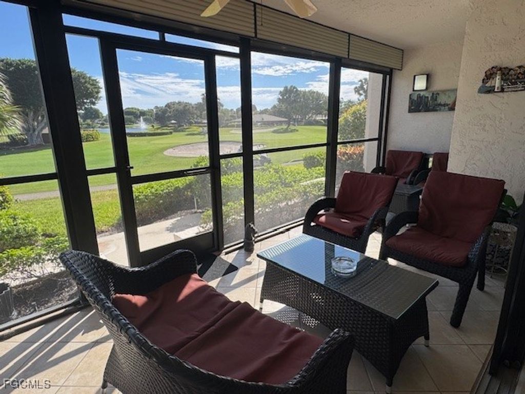 Located in highly sought-after Flagship Village, this rarely available style unit benefits from a prime location within the community. The eastern exposure ensures that the patio has brilliant sunlight in the mornings and shady, coolness in the afternoons, creating a pleasant setting for outdoor enjoyment with lush golf course and lake views at any time of day.