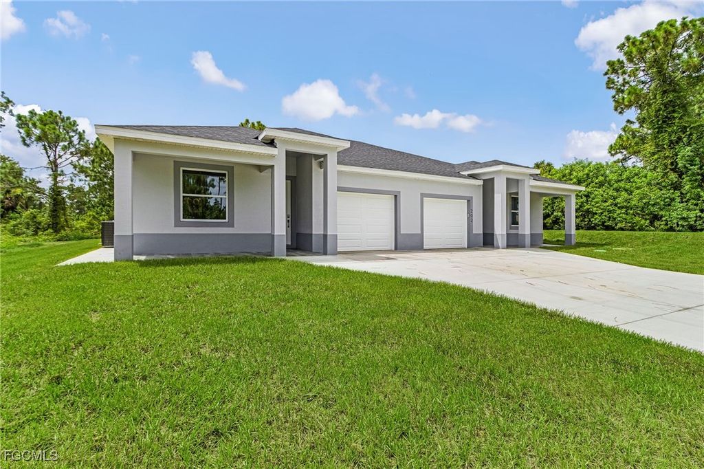 Step into modern, effortless living at this pristine 2025-built duplex, situated on 913 E 12th St in the rapidly expanding Lehigh Acres community. Each mirror-image unit features three generously sized bedrooms and two bathrooms outfitted with high-end fixtures and elegant finishes. Sunlight floods the open-concept kitchens and living areas, where sleek cabinetry, premium appliances, and stylish countertops invite both everyday meals and entertaining. Every bedroom offers a finished closet, while each owner enjoys the convenience and security of a private attached garage. Built for quality and comfort, the home's features include durable block-and-stucco construction, tile flooring throughout, impact-resistant windows, a water softener, well water and septic setup. Set on a spacious 0.24-acre lot zoned RM-2"”perfect for rental or multifamily use"”this property stands out with no HOA fees.
