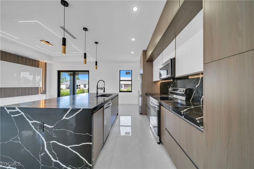 READY TO MOVE IN! This stunning new construction home combines modern design, comfort, and security. It features 3 bedrooms, 2 bathrooms, and impact-resistant windows for safety and energy efficiency. The modern kitchen offers quartz countertops, stainless steel appliances, and an open-concept layout perfect for everyday living or entertaining. Upgrades include a built-in audio system, a full security camera system, an irrigation system, and washer and dryer included. Outside, enjoy a beautifully landscaped garden with a living fence made of Clusia plants, providing both privacy and natural beauty. The exterior is fully illuminated, creating a warm and elegant ambiance. This move-in-ready home is the perfect blend of style, functionality, and peace of mind"”a must-see opportunity!
