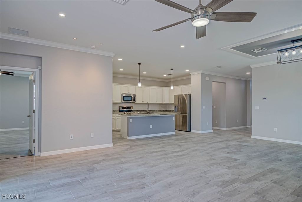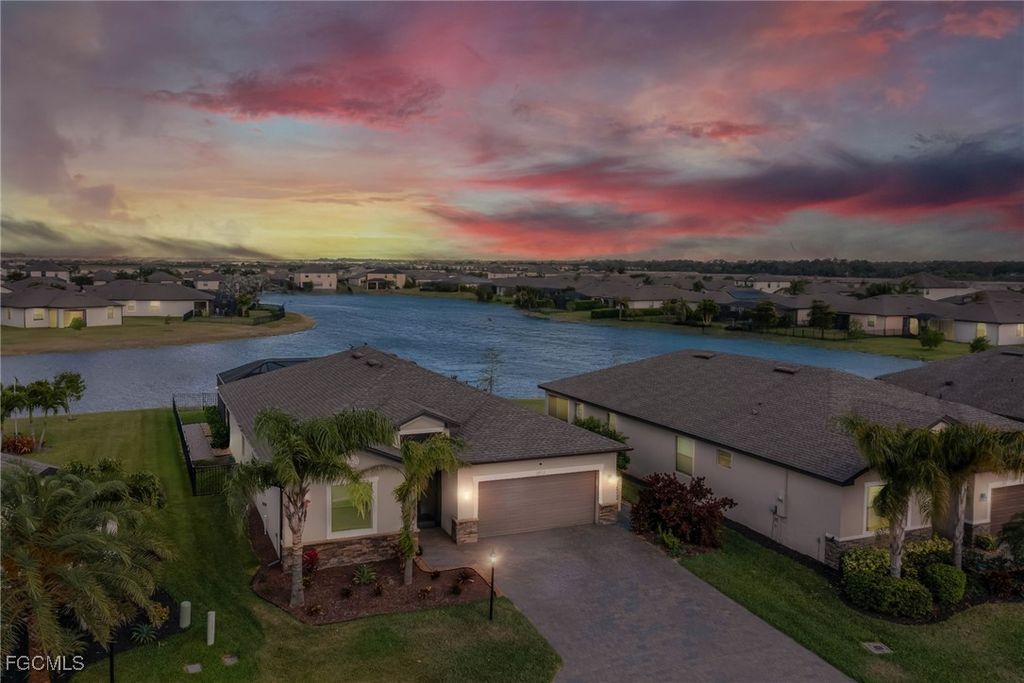 Indulge in the finest lakefront living with this elegant pool home in the gated community of Portico. This 4-bedroom, 3-bath Trevi model is perfectly positioned on a fenced cul-de-sac lot, offering peace, privacy, and stunning views of both sunrise and moonlight reflections over the lake. Inside, you'll find tile flooring throughout and an open-concept layout featuring a chef-inspired island kitchen with granite countertops, stainless steel appliances, and upgraded cabinetry "” ideal for both cooking and entertaining.