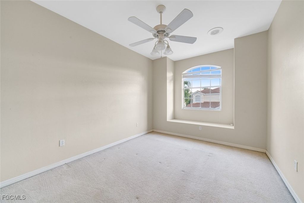 PRICED TO SELL"”bring all offers! Don't miss this 3-bedroom, 2-bath second-floor coach home in Tamarind Cay at Gulf Harbour Yacht & Country Club. Enjoy tranquil golf course views from the screened lanai and spacious open living area. The split floor plan offers privacy, featuring a generous primary suite with dual walk-in closets, double vanities, soaking tub, and separate shower. Light and bright kitchen with breakfast nook and ample storage. Tile and wood flooring throughout. Attached 1-car garage and just steps from the community pool. Optional memberships available for golf, marina, tennis, and fitness. Located in desirable South Fort Myers, minutes to world-class beaches, boating, Sanibel & Captiva islands, RSW Airport, shopping, dining, and entertainment. Experience the best of Southwest Florida living and enjoy the resort lifestyle every day.