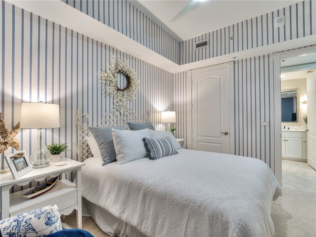 Stunning 6th Floor Castille in Palmas Del Sol. A must see property offering 10" ceilings, 3 bedrooms, 2.5 baths totaling over 2800 sq ft. Recently renovated with impact rayed custom iron front entry door, diagonal porcelain tile, new impact windows throughout, stunning kitchen with pull out & soft close, Sub Zero refrigerator, and considerable pantry. The oversized primary suite offers river views, large sitting area, separate shower an d soaking tube, and large walk-in closet with custom built-ins. The expansive lanai includes electric roll down shutters and provides picturesque sunsets with views to the west, north & east. Unique to high rise living, included with this unit is an oversized two car garage with space for a golf cart and vertical storage lift located on the first floor. 186 slip deep water Marina with slip available for lease or purchase. Some amenities herein available but not offered. Sq Ft approximate or from Lee County Tax Data.