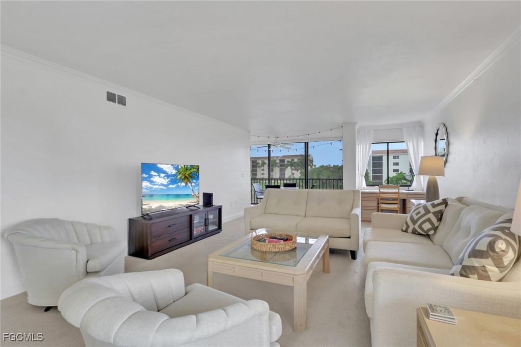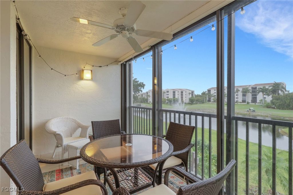 Welcome to a sanctuary where elegant upgrades meets serenity. This sunlit 2-bedroom, 2-bath corner condo is a jewel box of modern comfort, lovingly enhanced chef's kitchen offering quartz countertops, Stainless steel appliances, including hood and sink that gleams with contemporary and latest finishes. Recent LVP flooring installed to tie in warmth and convenience. Nice luxury and renovated/ updated guest, primary baths bring this condo into current market standards. The minute you walk in the door you are captivated by the views of 3 tropical fairways and lakes. The under the building parking also an added bonus. Enjoy views of community pool from kitchen window another bonus. The community is one of the most prestigious gated communities in SWFL where waterfront is a premium and boaters dream. 18 hole challenging executive golf course and 13 har tru tennis courts for those enthisasts, 8 pickle ball courts, 3 bocce cts . Choose from 2 amazing restaurants for hours of watching sports and enjoying the 19 th hole, or watching the sun go down into the gulf on the outdoor patios