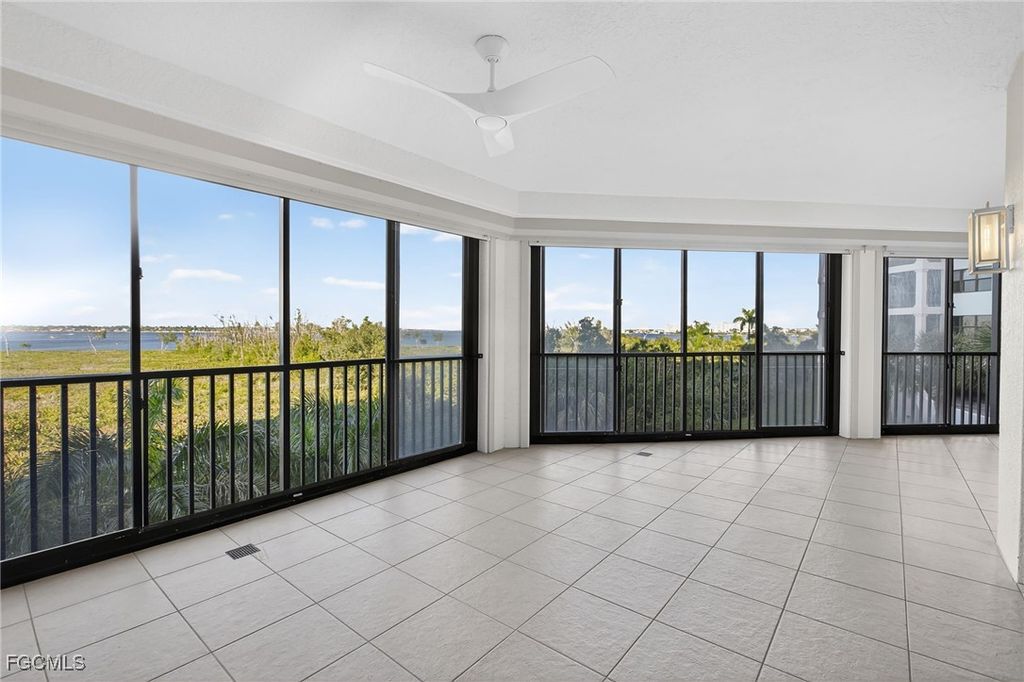 Enjoy refined waterfront living in the exclusive Palmas del Sol community within Gulf Harbour Yacht & Country Club. This beautifully updated corner-unit Castille model offers added privacy and an expansive screened-in lanai, perfectly positioned to capture sweeping views of the Caloosahatchee River.