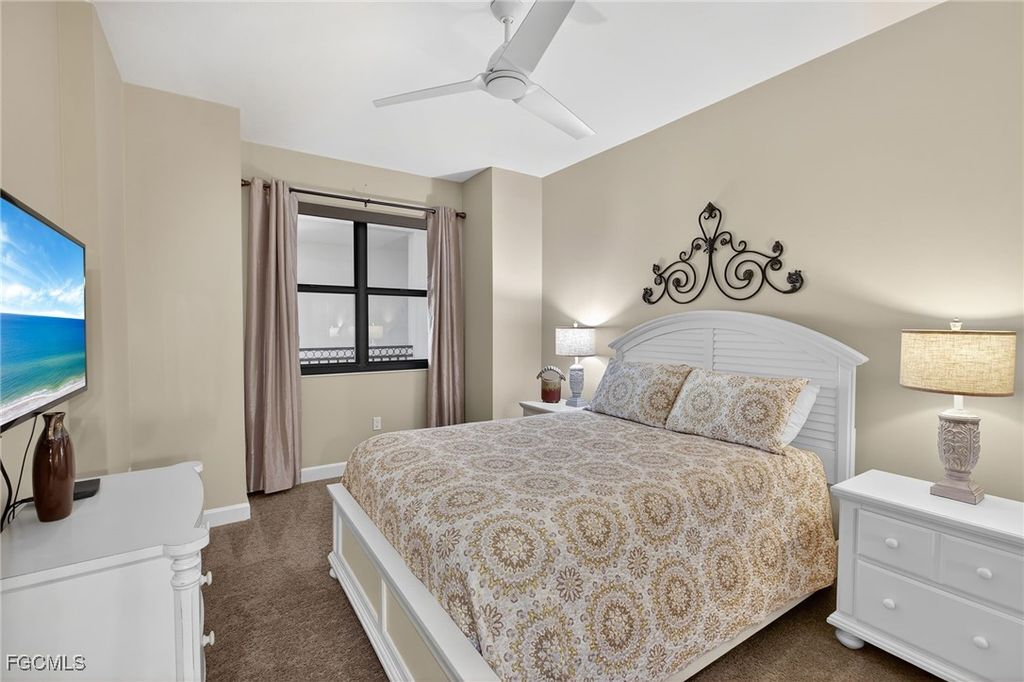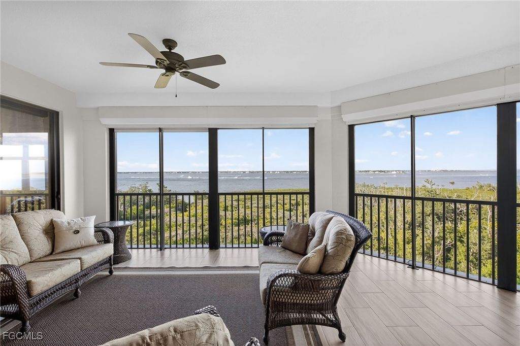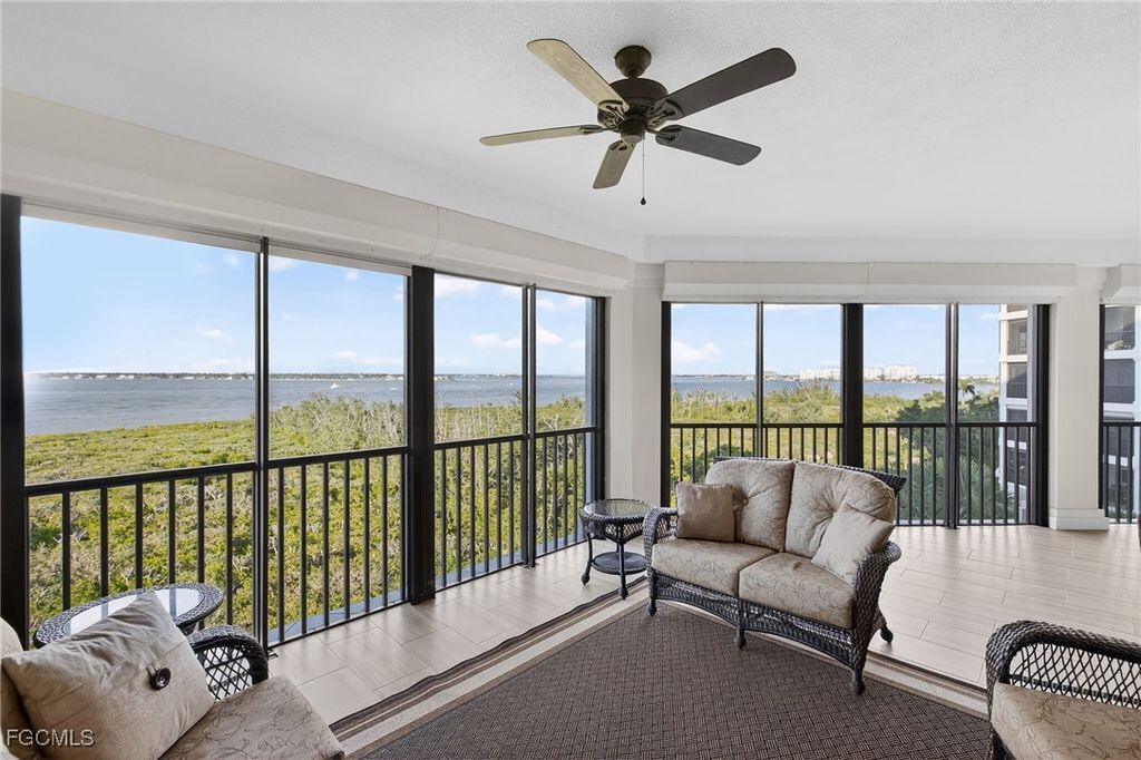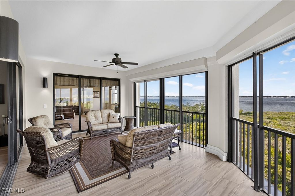 Enjoy elegant waterfront living in Palmas Del Sol, a luxury high-rise enclave within Gulf Harbour Yacht & Country Club on the Caloosahatchee River in Fort Myers. This spacious 3-bedroom, 2.5-bath residence features an open-concept layout, abundant natural light, and sweeping water views, plus the rare convenience of a private 2-car garage.