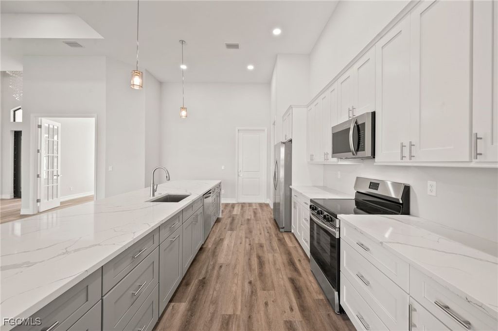 Why wait when you can move right in? Custom built and completed in 2024, this Gulf access home could be your next investment in Paradise. Seawall and Dock, heated Saltwater pool & spa and Picture-window screened Lanai. Over 2,500 sq. ft. of move-in-ready living space, 3 bedrooms + den/office and 3 beautifully appointed bathrooms. Volume, tray ceilings, complemented by an open-concept layout, large Quartz kitchen and oversized island, perfect for gatherings, casual dining or hosting holidays. The expansive living area, surrounded by Impact sliders and windows flow seamlessly, maximizing natural light and waterfront views. 3 car garage and circular driveway. Whole house reverse osmosis. The SW Florida lifestyle provides a gateway to boating, fishing waterfront adventures, golf, outdoor sports and more. Located in growing Northwest Cape Coral, this Home is the perfect blend of luxury, comfort and coastal living. Looking to live, vacation or invest and want new but don't want to wait? This Home is ready for you now.