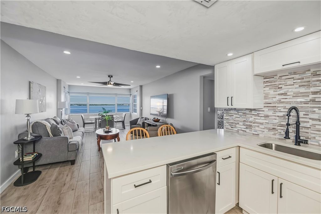 Experience elevated waterfront living on the Caloosahatchee River from this beautifully updated 5th-floor, fully furnished 2-bedroom condo, ideally located just minutes from Downtown Ft. Myers. From the moment you enter, you're greeted with panoramic river views from every room, filling the space with natural light and creating a peaceful, coastal atmosphere. End each day with breathtaking Southwest Florida sunsets, painting the sky just beyond your windows"”an everyday luxury that never gets old. The thoughtfully designed interior offers a bright, open-concept layout perfect for both relaxing and entertaining. The updated kitchen features quartz countertops, stainless steel appliances, and modern cabinetry, flowing seamlessly into the living and dining areas where the water views take center stage. Both bedrooms are generously sized and positioned to capture those same serene river views, offering a true retreat-like feel. An in-unit washer and dryer adds to the ease and convenience of everyday living. This well-maintained community is designed to complement the Florida lifestyle, offering a heated pool perfect for enjoying sunny afternoons, along with a community dock and fishing pier where you can spend your time fishing, watching boats cruise by, or simply soaking in the tranquil waterfront setting. The building also features secure, controlled entry and elevator access, providing both comfort and peace of mind, and the unit includes a covered parking space"”a valuable and convenient feature. Set within an up-and-coming waterfront neighborhood, this location offers the perfect blend of relaxed surroundings and accessibility. Enjoy the ease of being within walking distance to coffee shops, local breweries, and Publix, while still being just a short drive or bike ride to the vibrant Downtown Ft. Myers River District, known for its dining, entertainment, and nightlife. Rent includes water, sewer, trash, and access to community amenities, allowing for a truly low-maintenance, lock-and-leave lifestyle. This condo offers a rare opportunity to enjoy stunning river views, unforgettable sunsets, and effortless waterfront living in one of Ft. Myers' most desirable and evolving area.