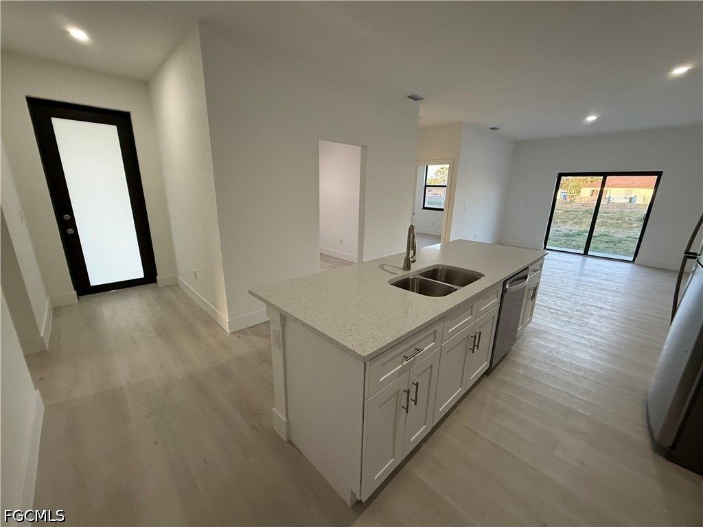 Brand new 3 bedroom, 2 bathroom duplex for rent in Lehigh Acres featuring a spacious open floor plan with modern finishes throughout. Enjoy a bright kitchen with white cabinetry, stainless steel appliances, and a large island perfect for entertaining. The home offers tile flooring throughout, a comfortable primary suite with private bath, and generously sized bedrooms. Includes a 1-car garage, in-unit laundry hookups, and a private driveway.