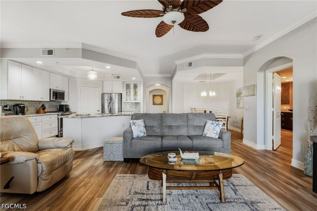 Nestled within the highly sought-after Mariposa community behind the gates of Gulf Harbour, this beautifully appointed first-floor residence offers sweeping views across the 14th, 15th, and 16th fairways"”providing a serene backdrop to everyday living. Relax and unwind from your private lanai as golfers play through and the sky transforms with breathtaking sunsets each evening.