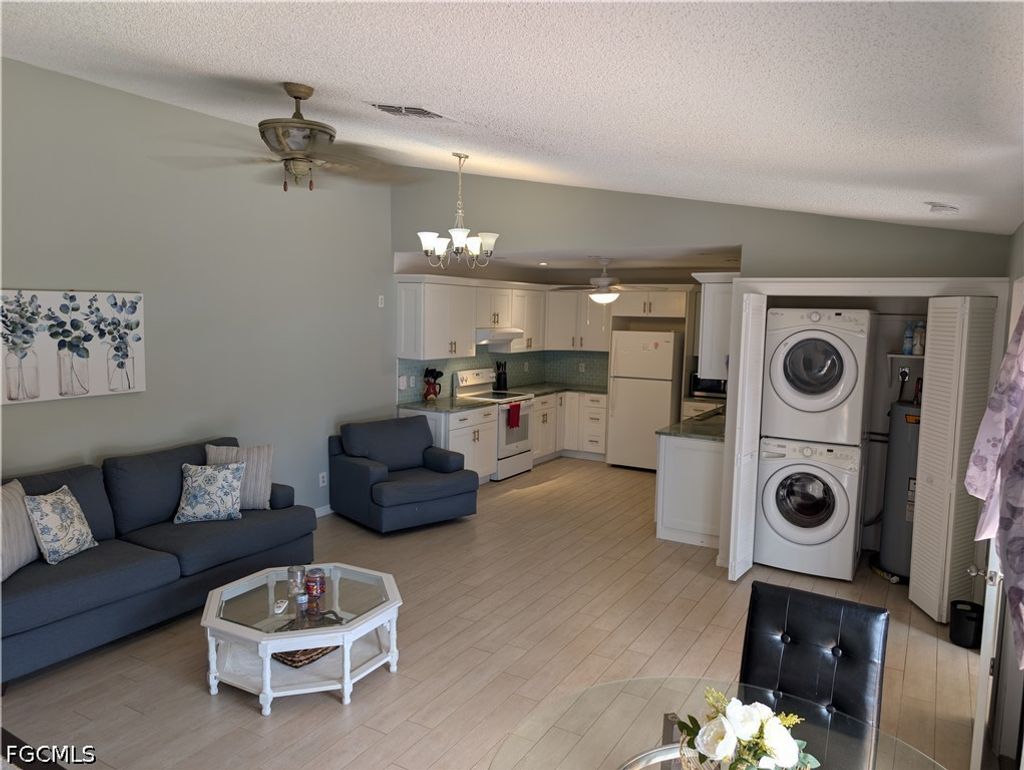 The primary bathroom features an upgraded shower with grab bars for added ease, along with a walk-in soaking tub designed for comfort and relaxation. A stackable washer and dryer maximize closet space, adding to the home's efficient layout. Additional value comes with a newer hot water tank, offering peace of mind for future ownership.