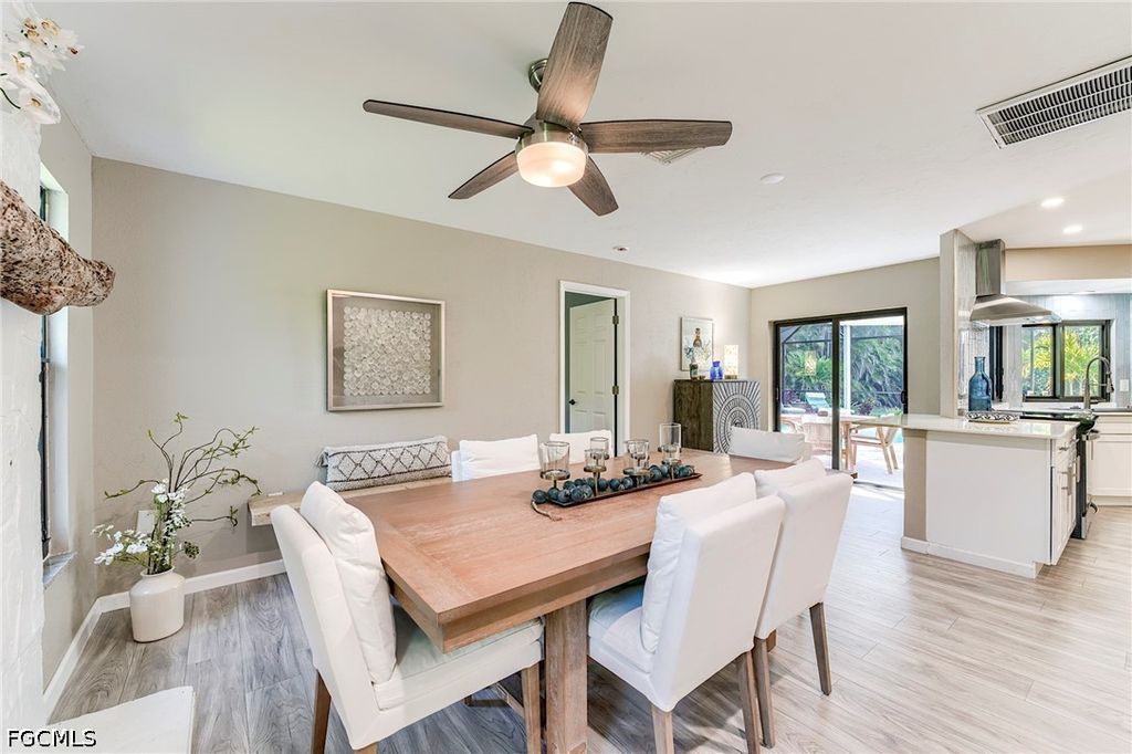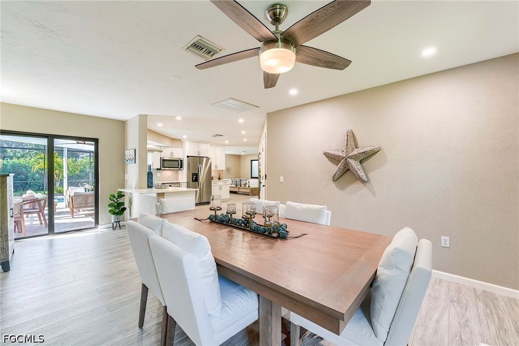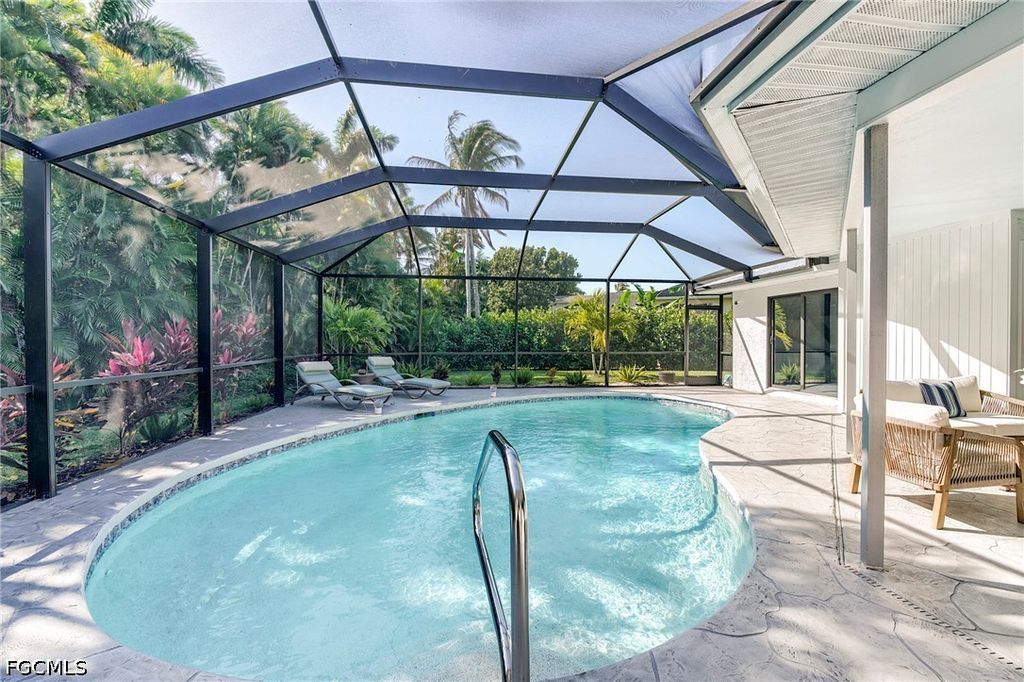 Welcome to San Mateo, a quaint non gated community located just a few minutes from the Sanibel Causeway. This updated, open aired home has been very well maintained and will not disappoint. Walk in and your eyes go directly to the Pool and Lanai. This may be your most enjoyable area of the house. The caged in Saltwater Pool comes ready to use with new equipment and an electric heater. In addition to the large lanai, there are plenty of access points throughout the house to come and go from the pool area. The inside of the home has a split bedroom layout and a spacious kitchen with stainless appliances, views of the outdoors, and a great dining area with a fireplace. Light filled living spaces flow effortlessly from room to room, creating an inviting atmosphere ideal for everyday living and entertaining.
