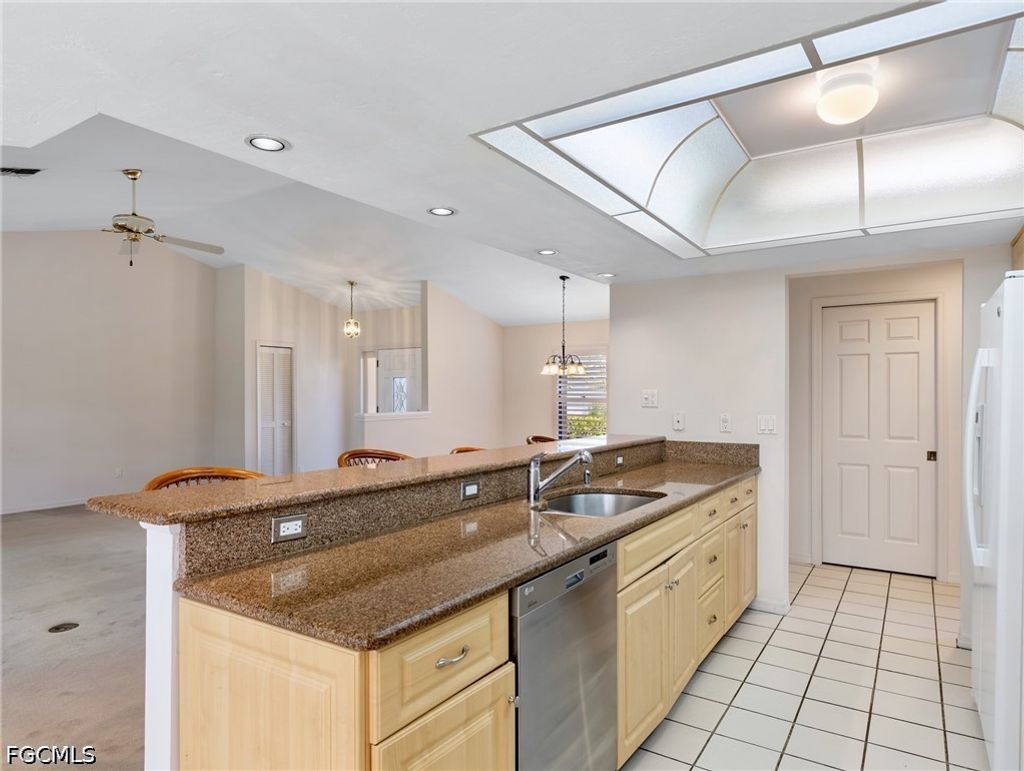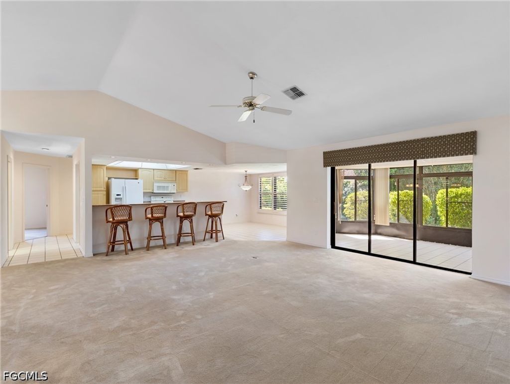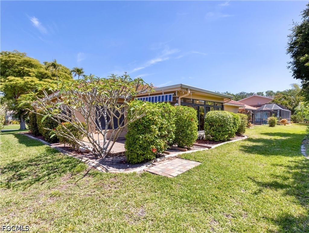 Welcome to Caloosa Yacht & Racquet Club "” a gated, waterfront community nestled along the scenic Caloosahatchee River, where boating enthusiasts enjoy a deep-water marina with direct Gulf access. Set at the end of a quiet cul-de-sac and surrounded by lush landscaping, this 3-bedroom, 2-bath residence offers a blank canvas for a new owner to create their dream home. The enclosed screened porch, with desirable southern exposure, functions beautifully as a Florida room, perfect for relaxing or entertaining year-round. Recent updates include a new roof (2020), AC (2017) and Kevlar hurricane panels, providing added protection and peace of mind. Caloosa Yacht & Racquet Club is known for its outstanding amenities and low HOA fees which include exclusive access to the Blue Coyote Private Supper Club, Olympic-size swimming pool, Pickleball and Tennis courts, private park and scenic walking paths, and, a freshwater lake ideal for fishing or kayaking. Here's the best part for inspired boaters - an exceptional marina with boat slips available for lease (for residents only). This is more than a home"”it's a lifestyle. You are now HOME!
