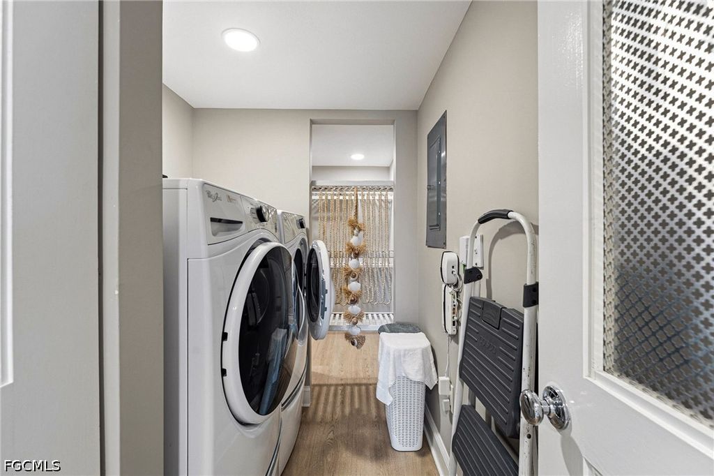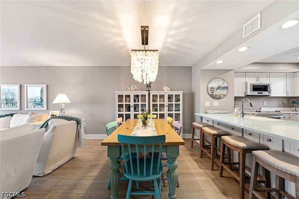 SIZZLING SUNSETS!! ABSOLUTELY THE BEST VIEWS in Southwest Florida!! This newly renovated two bedroom two full bathroom bay-front condo offers STUNNING VIEWS overlooking the Sanibel Causeway bridge featuring gorgeous sunsets every evening! Brand new HVAC system! This condo is offered TURNKEY FURNISHED and is ready for you to come and live your best life; just bring your toothbrush and a change of clothes and don't forget your flip flops and that lost shaker of salt. Deeded under the building parking spot will keep your vehicle out of the Florida sun and there is private deeded under-building storage for all of your extra beach toys. Plank style luxury vinyl flooring throughout the condo feels soft and coastal. The gorgeous Capiz chandelier over the dining room feels fresh and beachy! New ceiling fans provide a cool breeze. Both bathrooms have been completely renovated for modern elegant living with the primary bathroom featuring dual sinks for your convenience. Spacious kitchen features attractive countertops and all new appliances. Amenities include tennis, pickleball, shuffleboard, swimming pool, hot tub spa, and several restaurants and bars. Enjoy walking the miles of tropical paths throughout the Punta Rassa community. Restaurants within walking distance are the Bimini Bait Shack, Charley's Cabana, Courtside Steakhouse, and the exclusive yacht club restaurant/bar which is private to Punta Rassa residents and Yacht Club members. Take a quick 5 minute drive and you are on Sanibel Island or 15 minutes the other way puts onto Fort Myers Beach, which is well known for its powder-sugar white sandy beaches! And most everyone agrees that Sanibel Island is the undisputed Shelling Capital of the World! Drive just 5 minutes down Summerlin road and you arrive at the Publix shopping plaza with numerous shops to get you everything you could possibly need. The International Airport is an easy 30 minute drive from Punta Rassa. You can lose yourself and all your problems while watching an endless parade of boats/yachts/ships cruise by as they head out into or return from the Gulf. Schedule your showing today.