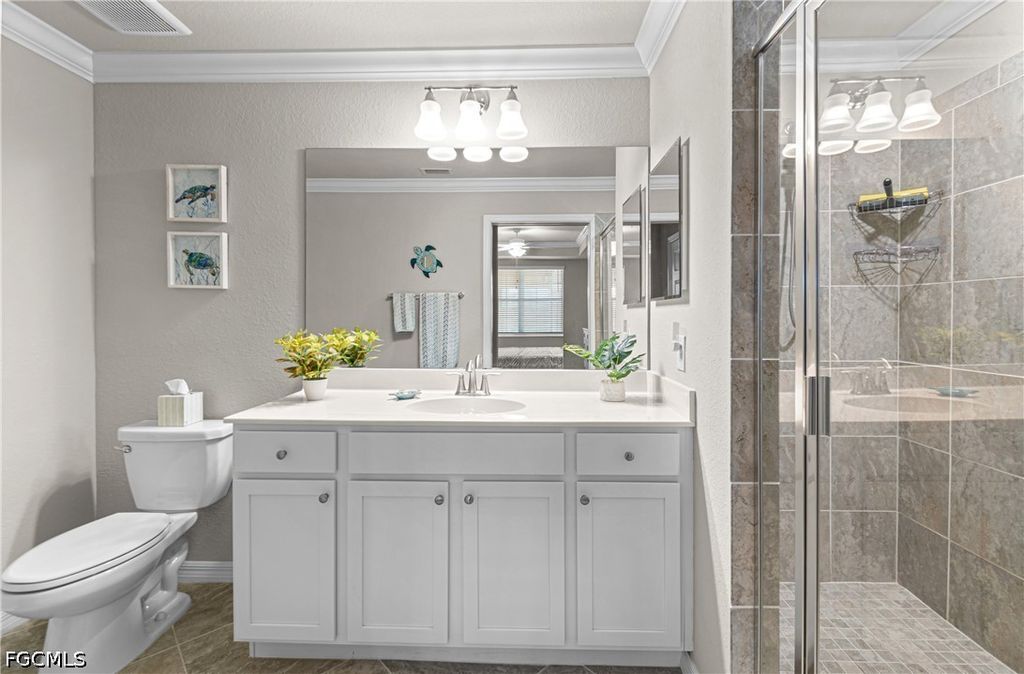 Enjoy the screened lanai with upgraded tile flooring and peaceful golf and lake views, along with added privacy on both sides. The primary suite features a beautiful king size bed set, a walk-in closet, and an ensuite bath with a large walk-in glass shower and spacious vanity. The guest bedroom features 2 twin size beds, and the guest bath offers a tub/shower combination.