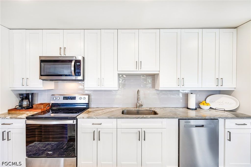 DON'T DELAY! Now is your chance to own a PRIVATE OASIS at Stratford Place Condos! This FULLY RENOVATED PENTHOUSE condo is nestled in the canopy of the palms and offers the perfect blend of luxury and tranquility. With 2 bedrooms, 2 bathrooms, and an OPEN-CONCEPT LIVING area, this CORNER END-UNIT provides maximum NATURAL LIGHT with CYPRESS LAKE GOLF COURSE & LAKE VIEWS. Cozy up by the ELECTRIC FIREPLACE on cool evenings or take a dip in the COMMUNITY POOL on hot summer days. Keep your vehicle protected from the elements with the assigned CARPORT. The kitchen is every chef's delight with sleek GRANITE counters, STAINLESS-STEEL appliances, white shaker cabinets, and a breakfast bar/island that's fit for royalty and perfect for entertaining. The bathrooms are equally impressive with MODERN fixtures that exude sophistication. This gem offers a host of TOP-OF-THE-LINE features that are sure to impress even the most discerning buyer: updated light fixtures, wood-look LVT throughout, modern baseboards, trimmed windows, and styled with the utmost attention to detail. Furnishings and decor are negotiable for a MOVE-IN READY or RENT-READY experience. Whether you're looking for a full-time residence, vacation getaway, or annual rental, this condo has everything you need and more. Situated in a PRIME LOCATION off Cypress Lake Dr, you are minutes away from ample shopping, dining, entertainment, and the exquisite beaches of SWFL. With all these incredible features and more in a super friendly and active community, this condo truly offers the BEST VALUE BUY!! Live the luxurious lifestyle you deserve in this peaceful penthouse retreat!