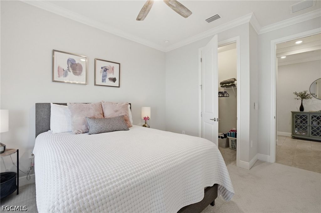 Beautifully crafted newer pool home where thoughtful design meets custom elegance in the gated community of Tide Marsh. Elegant details such as crown molding, tray ceilings, and custom shiplap accents that set a sophisticated yet inviting tone throughout the open living spaces. The heart of the home is a beautifully appointed chef's kitchen, showcasing quartz countertops and big island, stainless steel appliances, a gas range, and a walk-in pantry with solid wood shelving. Designed with comfort and privacy in mind, this 4 bedroom, 3 full bathroom layout features thoughtfully separated living wings, offering an ideal retreat for both owners and guests. The primary suite is complete with dual walk-in closets, a spa inspired bathroom with dual vanities, and an oversized walk-in shower. Push back the pocket slider doors and retreat to a custom heated, saltwater pool and unwind on the sun shelf, enjoy the soothing waterfall, or entertain under the spacious screened lanai with a large covered area ready for an outdoor kitchen. Additional highlights include timeless tile flooring in the main living areas, plush carpeting in the bedrooms, a dedicated laundry room with utility sink, hurricane impact windows and doors, designer window treatments, and a spacious two-car garage with epoxy flooring and ample storage. Nestled within the intimate, gated Tide Marsh community of just 63 homes, residents enjoy a low maintenance lifestyle with lawn care included, along with sidewalks, streetlights, underground utilities, and a golf cart friendly setting. Tucked away for privacy yet ideally located just minutes from pristine beaches, upscale shopping, dining, and the best of Fort Myers.