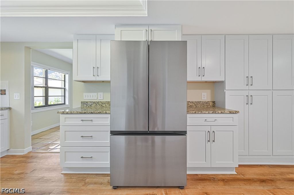 Welcome to this beautifully maintained attached villa in the desirable Whiskey Creek Village Green community! This 2-bedroom + den (Florida Room), 2-bath home offers comfort, convenience, and peace of mind with numerous recent updates and upgrades. Step inside to discover a brand-new (2026) kitchen featuring granite countertops, white shaker cabinets, and newer appliances"”perfect for both everyday living and entertaining. The interior has been freshly painted, creating a bright and inviting atmosphere throughout. Major systems have already been taken care of, including a new roof (2024) and AC (2020). Electric hurricane shutters provide added security and convenience, while the large driveway offers extra parking for guests. Enjoy outdoor living with your own mango tree and a prime location at the end of a quiet cul-de-sac. The HOA covers lawn care and roof maintenance, making for easy, low-maintenance living"”and no flood insurance is required. Located in a 55+ golf cart-friendly community, residents enjoy close proximity to shopping, dining, SWFL beaches, Lakes Park, and Whiskey Creek Golf Course.