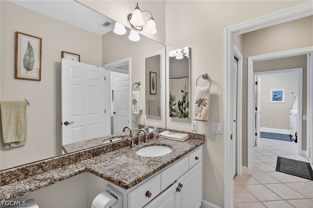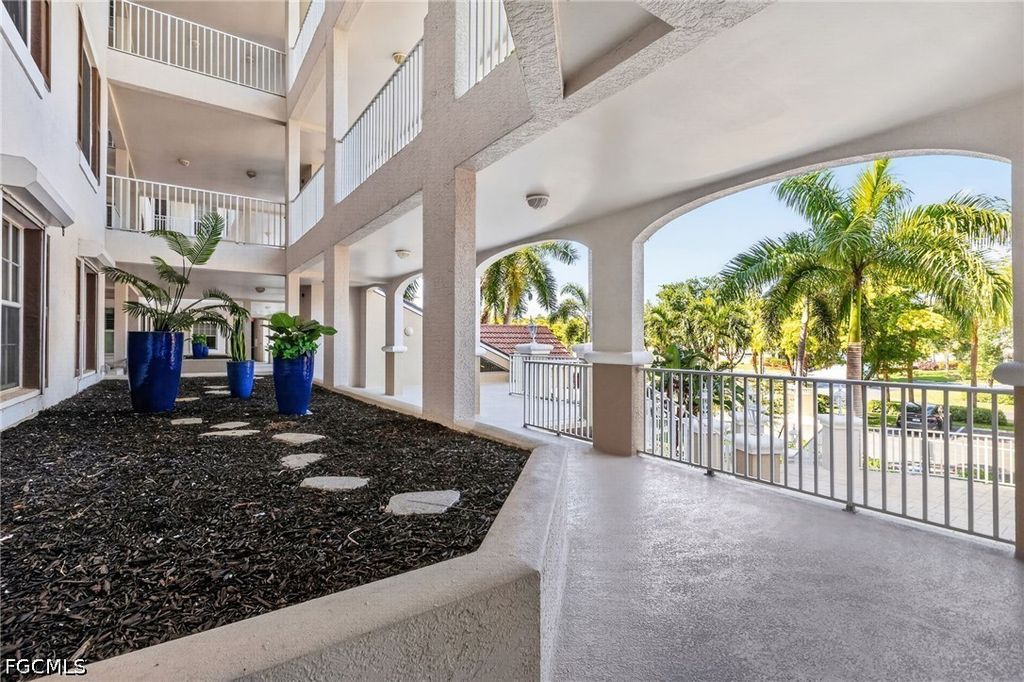 Welcome to this beautifully maintained Sutton Walk condo offering 2 bedrooms plus a den and a truly move-in ready experience. This residence has been exceptionally well cared for and is offered turnkey furnished, making it an effortless choice for seasonal or full-time living. Step inside to find diagonal tile flooring throughout the kitchen, entry, den, and all wet areas, complemented by wood flooring in both bedrooms. Plantation shutters throughout. The spacious primary suite features a large walk-in closet, updated ceiling fans, and a stunningly renovated master bath with dual vanities, granite countertops, and a walk-in shower with frameless glass door and tile surround. The kitchen is equipped with granite countertops and stainless-steel appliances, while the guest bedroom offers wood flooring, newer furnishings, and plantation shutters. The guest bath is equally well-appointed with granite countertops and a shower/tub combination. Enjoy peaceful mornings and relaxing evenings on the extra-large lanai overlooking a serene lake and preserve view"”one of the standout features of this home. Additional highlights include a high-efficiency A/C system (2022), washer and dryer included, electric roll-down hurricane shutters, and a 1-car garage with covered parking at ground level for added convenience and protection. Immaculately clean, tastefully furnished, and priced to sell, this Sutton Walk condo is a rare opportunity for buyers seeking a low-maintenance, move-in ready property with beautiful views. If you've been waiting for the right unit that requires little to no work"”this is it.