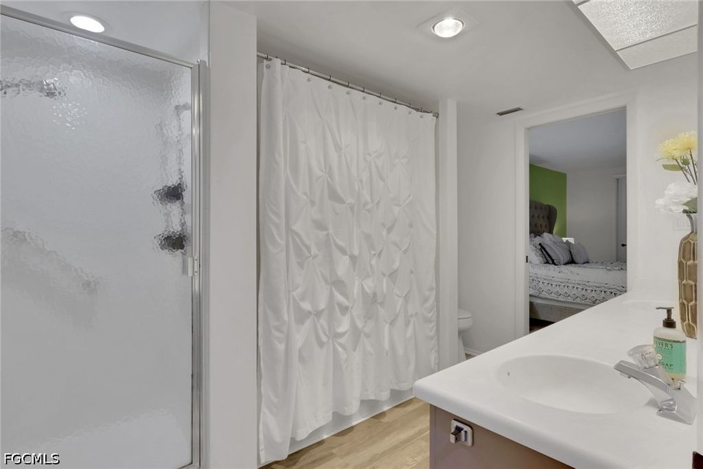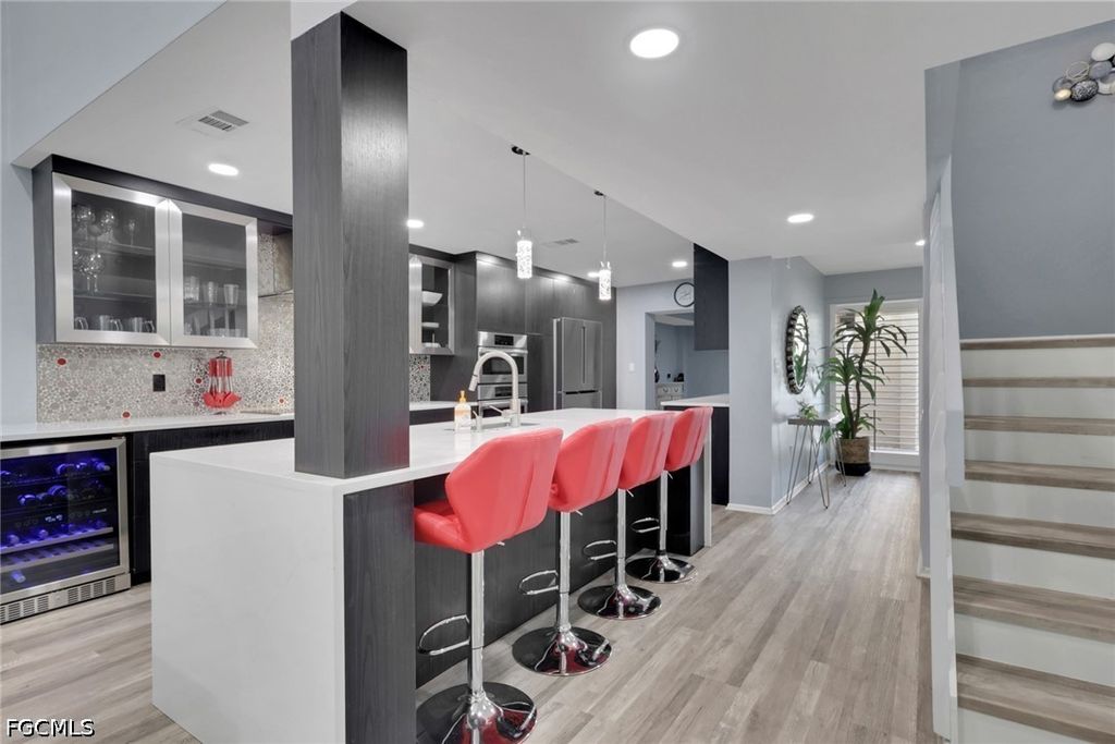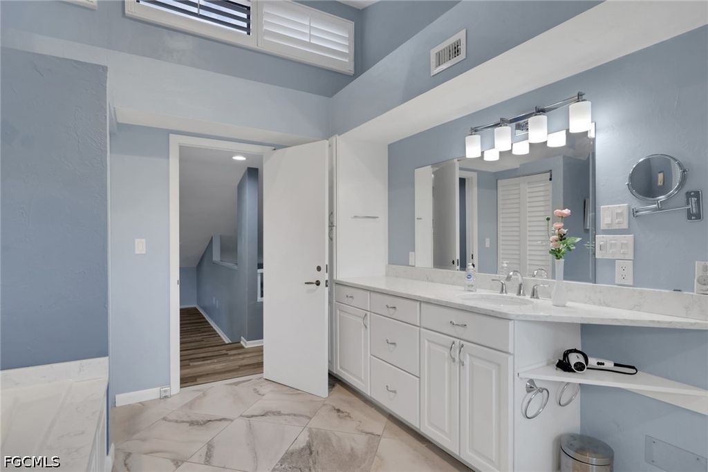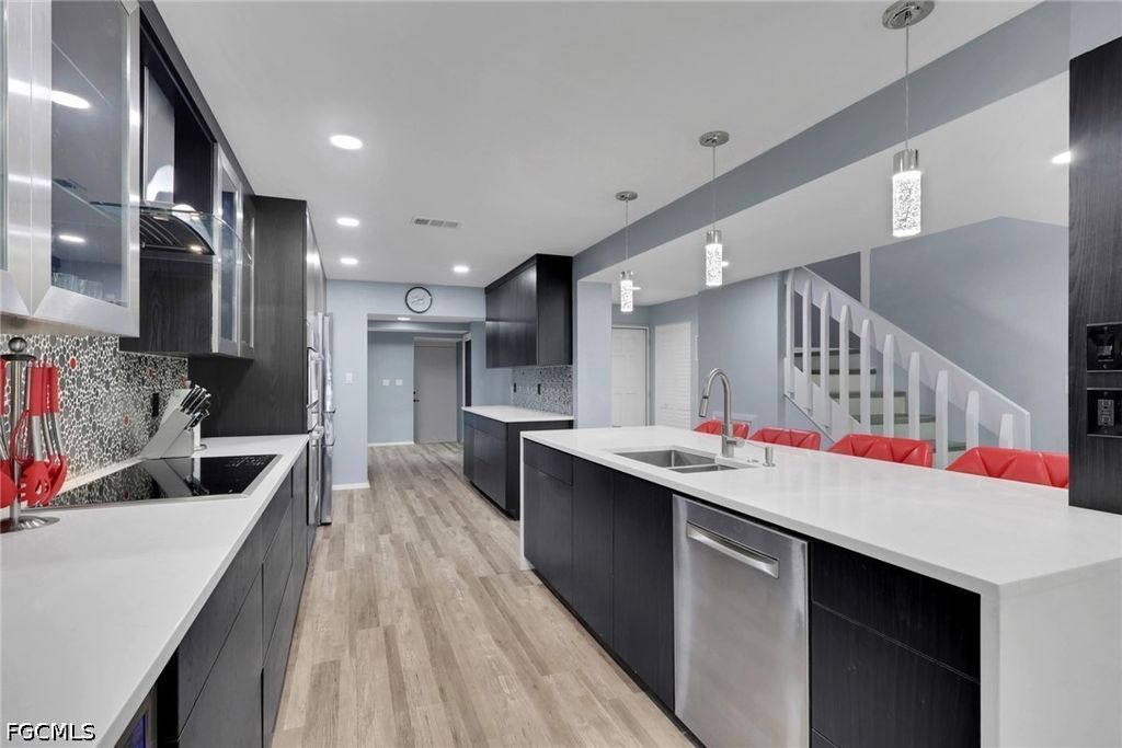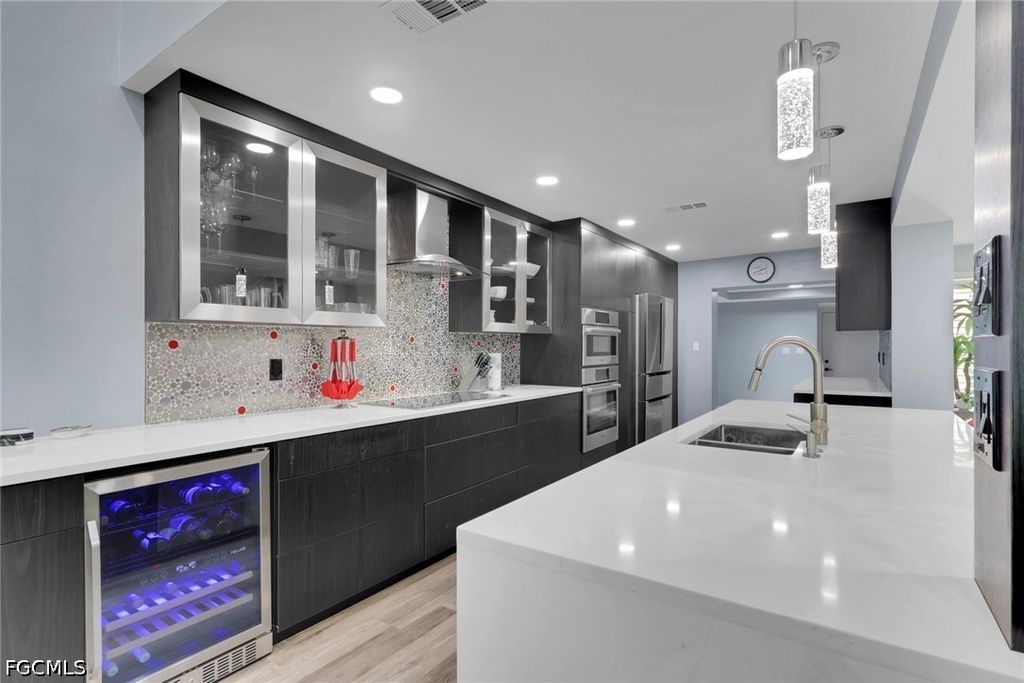 The updates continue with a refreshed powder room and a beautifully redesigned primary bath. Multiple walk-in closets, hurricane-rated sliders and windows throughout, three-zone A/C, and an updated electrical system add comfort and peace of mind. The single-car garage features an epoxy finish for a clean, polished look.