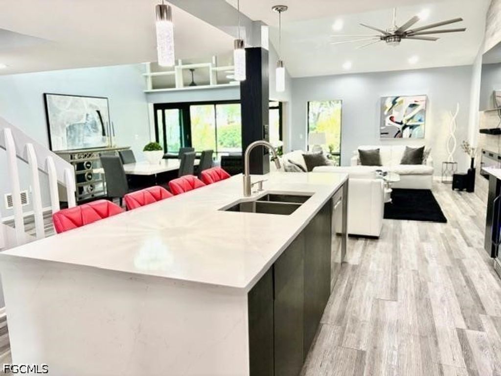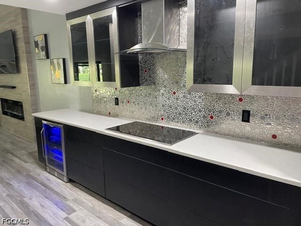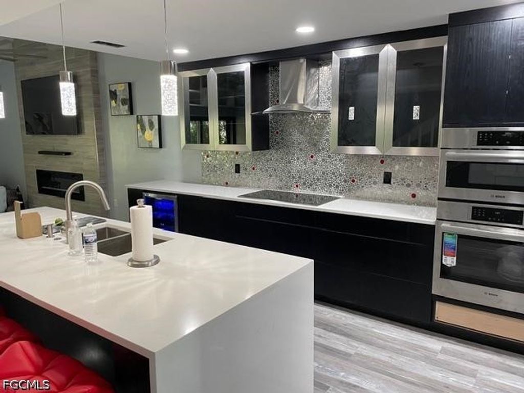 Step inside and feel the sophistication. The home showcases plank tile flooring, volume ceilings, and a built-in fireplace that instantly sets the tone for warm, inviting ambiance. The fully renovated kitchen is a true showpiece"”custom cabinetry, quartz countertops with a waterfall edge, a spacious island, and high-end Bosch appliances come together to create a sleek, modern culinary space ideal for both everyday living and effortless entertaining.