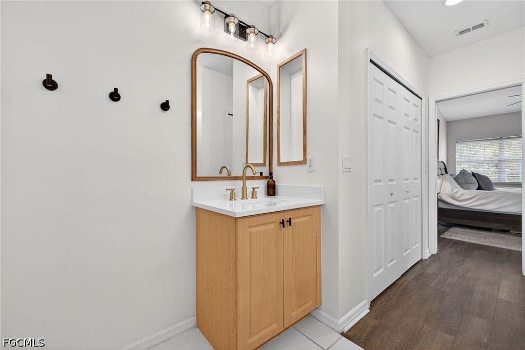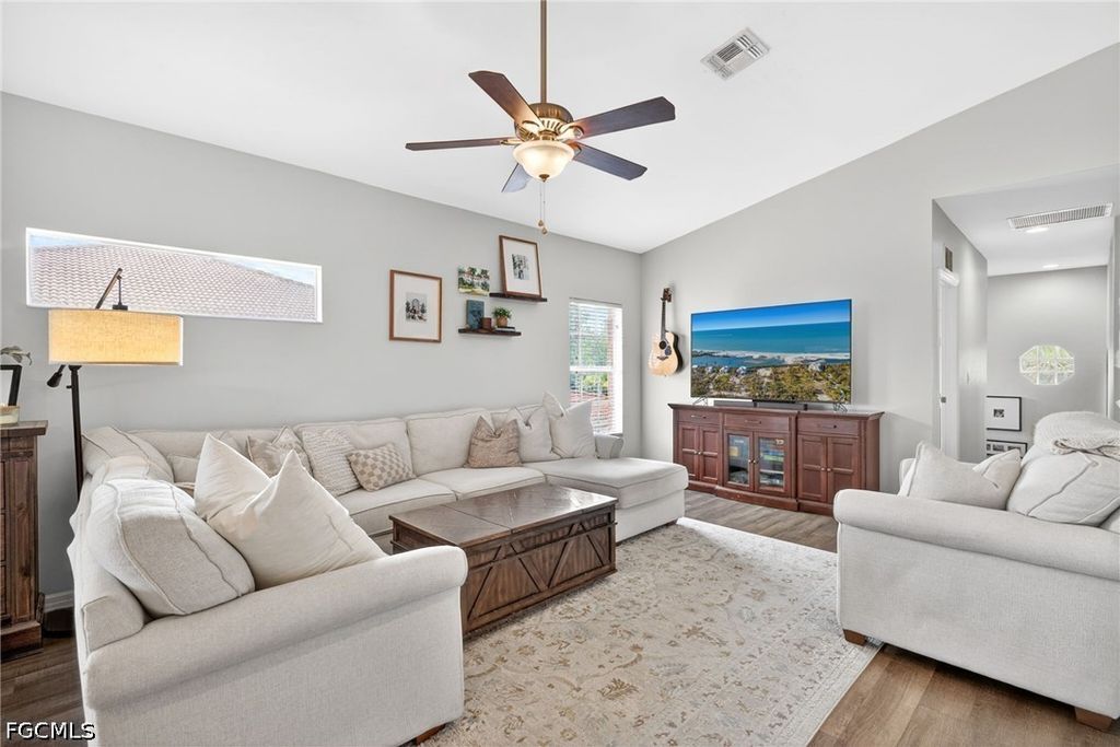 This 3-bedroom, 2-bath home offers 1,423 square feet with a functional layout. The primary suite, tucked away in the back of the unit, is generously sized and includes access to the screened-in lanai. The en-suite bathroom has been thoughtfully updated with dual vanities, quartz countertops, and a tiled shower. Your attached 2-car garage has a 15' tall ceiling, plenty of room for storage to maximize the space. The HOA is well-managed with strong reserves and upcoming plans for roof replacement and exterior painting, with no special assessments expected. Just down the road, the recently purchased Mullock Creek Marina is set to add a new boat ramp with direct access to Estero Bay, along with nearby boat storage options. A lot of new and exciting things to come in the area for this ready to move in townhome