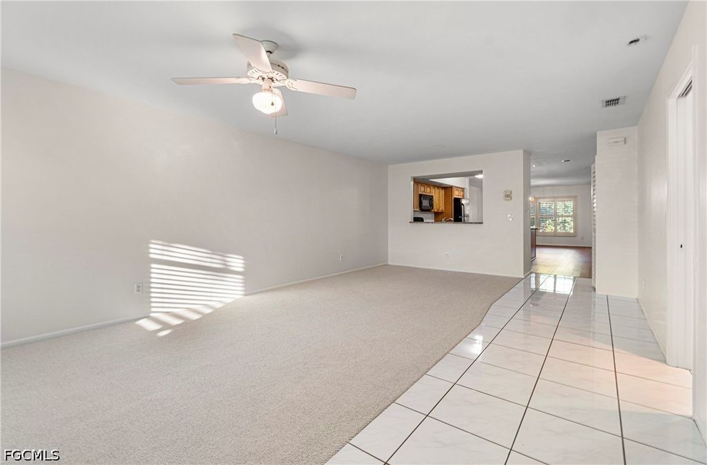*SELLER OFFERING A 4.5% INTEREST RATE BUY-DOWN WITH AN ACCEPTABLE OFFER* Welcome to easy Florida living in this beautifully refreshed FIRST-FLOOR condo with NO STAIRS to navigate, offering ultimate convenience in the desirable Club at Crystal Lakes community. This three-bedroom, two-bath home has been recently updated with a full interior repaint, including walls, ceilings, trim, and doors, along with brand-new carpeting throughout, creating a clean, bright, and move-in ready space. The spacious living area flows effortlessly into the kitchen and dining space, making it ideal for both everyday living and entertaining. The kitchen features a large center island with granite countertops, perfect for casual meals or gathering with friends and family. The primary suite offers a private en-suite bathroom, while two additional guest bedrooms are thoughtfully situated on the opposite side of the condo for added privacy and share a full bath, a layout that works beautifully for families, guests, or a home office setup. Step outside to the screened-in lanai and enjoy peaceful views of lush, tropical landscaping. The lanai also includes a convenient laundry closet and an electric storm shutter, while impact-resistant glass on the remaining windows provides added peace of mind. Additional highlights include a covered carport with an extra storage closet, ideal for beach gear, bikes, or seasonal items. Residents of Club at Crystal Lakes enjoy an impressive array of resort-style amenities, including multiple pools and spas, a clubhouse with sauna, tennis and pickleball courts, scenic lakes with a fishing pier, walking and jogging paths, and an active social calendar. Perfectly located just a short walk to Lakes Park and minutes from Fort Myers Beach, Sanibel and Captiva Islands, hospitals, shopping, dining, and Southwest Florida International Airport, this condo is an excellent choice for a full-time residence, seasonal retreat, or investment opportunity.