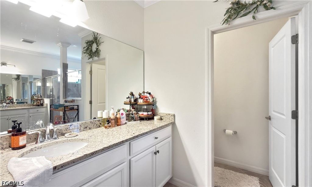 The PRIMARY SUITE has large sliding glass doors that let in an abundance of natural light. The luxurious primary bathroom features TWO WALK-IN CLOSETS, DUAL COUNTERS/SINKS, A SEPARATE WATER CLOSET, AND A MASSIVE WALK-IN SHOWER.