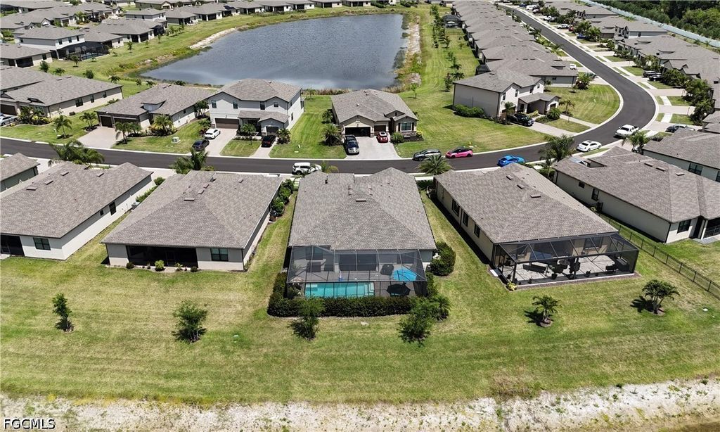 Outdoors, enjoy a HEATED POOL within a SCREENED-IN LANAI overlooking the lake with WESTERN EXPOSURE, creating the perfect setting for sunsets, relaxing evenings, and entertaining guests. GUTTERS throughout add to the home's functionality and convenience.