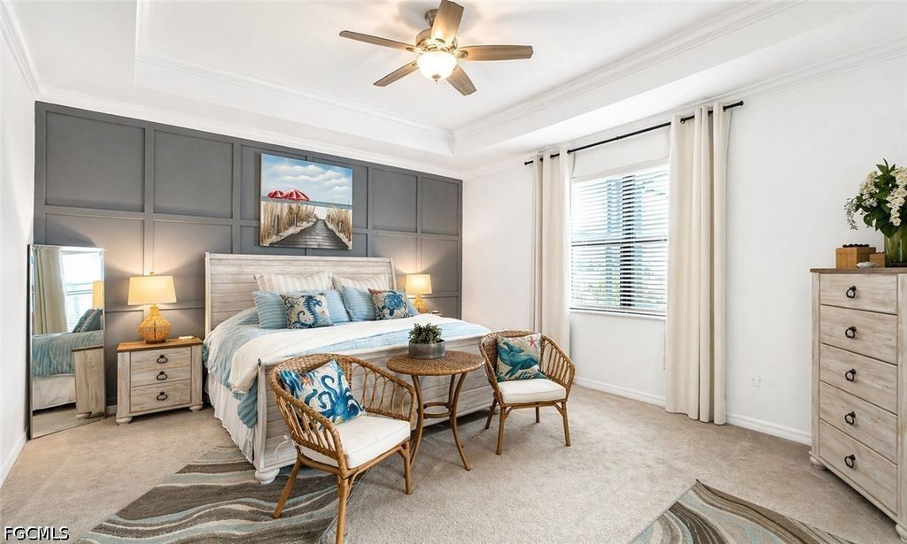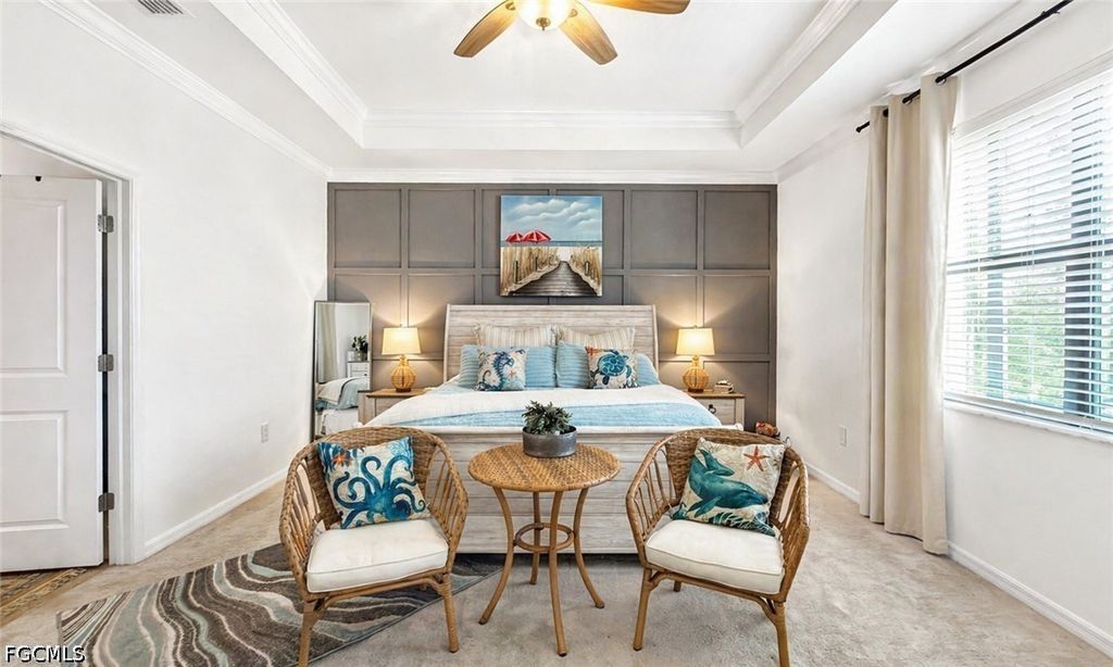 The home features 3 BEDROOMS + DEN, 3 FULL BATHROOMS, a 3-CAR GARAGE, and so much more. Step through the DOUBLE GLASS DOORS into a bright, welcoming foyer that leads into the expansive great room, highlighted by a custom SHIPLAP ACCENT WALL and TRAY CEILING, creating a warm yet refined focal point. The open layout was designed for both entertaining and everyday living, offering seamless flow between the living, dining, and kitchen areas. WOOD ACCENT DESIGNS IN THE BEDROOMS and CROWN MOLDING IN THE MAIN LIVING AREA AND PRIMARY SUITE add an extra layer of detail and character throughout the home.